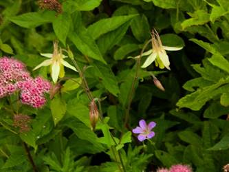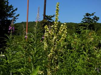 志賀高原リゾートゴンドラリフト付近25/07/29 ブナ平ゴンドラリフトを降り、最後の、志賀高原リゾートゴンドラリフトに乗るべく、歩を進めると、道脇に、色んな花(ネビキミヤコグサ・アレチマツヨイグサ・ミツモトソウ・クサフジ?・キンロバイ・イケマ)が咲いており、先を急ぐ女房殿を追いかけながら、撮影。 標高1400m?。 |