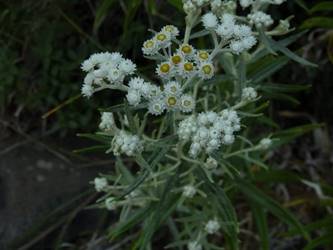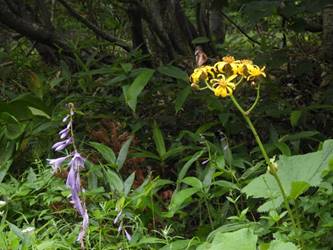 東館山高山植物園25/07/29 志賀グランドホテルの女将自ら運転する自家用車で、東館山ゴンドラリフト乗り場まで送り届けて貰い、「ゴールデンライン」完遂のための腕輪チケットを受け取り、東館山高山植物園に到着したのは、10時半。 標高2000mのこの場所は、気温19℃で且つ曇り空で、平地とは比べ物にならない別天地でした。 しかし、ゴンドラリフト3本を乗り継いで行く集合場所での集合時刻は13時半との事で、集合場所近くの蓮池に咲く花の観察時間を考えると、下りのゴンドラリフトの乗車は、12時半がギリギリで、ここでの散策時間は2時間弱。 初めての場所なので、どの程度回れるか判らないうちに、草花散策に出掛けました。 上り下りのある散策道で、2時間弱の散策でも結構疲れ果て、12時20分、山頂カフェでホットドックの昼食を済ませ、12時半、下りのゴンドラリフトに乗り込みました。 肝心の花ですが、 初花14種(センジュガンピ・タカネアオヤギソウ?・チョウジギク・ハクサンオミナエシ(コキンレイカ)・ミネウスユキソウ・タカネナデシコ・クロヅル・シガアヤメ・シャジクソウ・イブキボウフウ?・イブキセリモドキ?・タカネコンギク・オニアザミ?・ノハラアザミ?)に遭遇し、キンコウカ・バイケイソウ・ニッコウキスゲ・ハクサンフウロ・ヤナギラン・ヨツバヒヨドリ・クガイソウ、などが群生開花し、クルマユリ・コマクサ・ミヤマホツツジ・マルバダケブキ・コバノイチヤクソウ・タマガワホトトギス・イワショウブ・イブキトラノオ・ハナチダケサシ・ヤマブキショウマ・モウセンゴケ・ミズギク?・シナノオトギリ?・イワアカバナ、なども開花しており、サンカヨウ・オオヤマレンゲ・アカモノ・ノウゴウイチゴ?・オオカメノキ・ギンリョウソウなどが実を付けていました。 蝶は、コヒョウモンが多数居て、マルバダケブキに停まるアサギマダラも見つかりました。 ミズギクですが、ここで見たものは、茎葉が、通常のミズギクよりだいぶ大きく、ミズギク?、としました。 また、セリ科の花・アザミの花は、同定が難しく、いい加減な同定となっています。 |