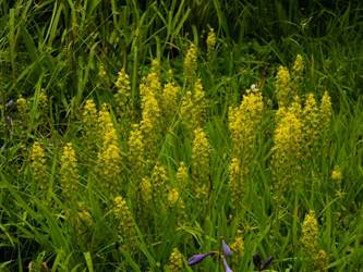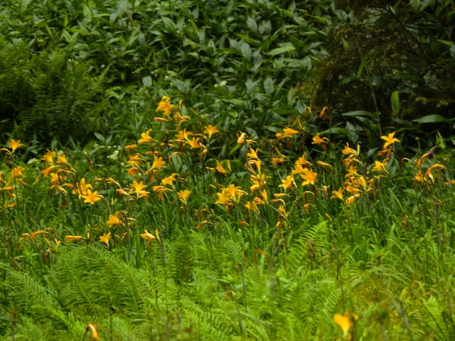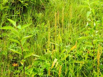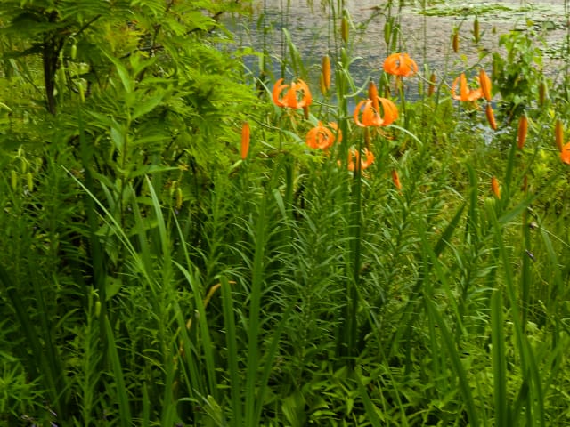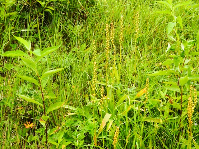 志賀高原蓮池25/07/29 志賀高原リゾートゴンドラリフトは、3個のゴンドラがくっ付いて運行するものでしたが、少し驚いたことに、降りるのではなく、登っていました。 志賀高原リゾートゴンドラリフトを降りたのは、13時少し過ぎ。 蓮池は、ゴンドラリフトを降りた場所から50m程の場所にあり、集合時刻(13時半)が迫る中、散策する時間(所要時間20分らしい)があるか不安になりつつ、池に到着すると、同じツアー参加者を池脇に見掛け、合流。9人中5名なので、少々遅れても多数決で何とかなる、との事で、池を一周。 集合場所には、5分の余裕がある、13時25分に戻って来られました。 蓮池では、ハスの花が満開との宿泊ホテル案内人の情報にも拘らず、ハスは見当たらず、期待していたヒツジグサの開花もなく、あったのはスイレンだけでしたが、 池にはコウホネも開花しており、池の周回路上には、コオニユリ・ホツツジ・ノリウツギ・ヤブカンゾウ・イケマなどが開花していました。(イケマの撮影は時間の都合上パス) 標高1500m?。 |