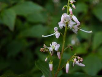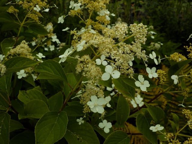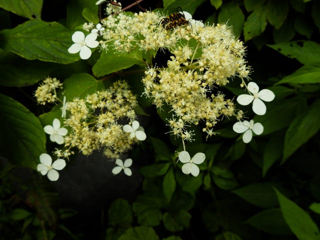 ブナ平ゴンドラリフト乗り場付近25/07/29 東館山ゴンドラリフトを降り、2つ目のブナ平ゴンドラリフトに乗り継ぐため、乗り継ぎ用のゴーカートと、徒歩で、乗り場に行く道中、ヤマアジサイ?とツルアジサイを見掛け、撮影。 標高は1700m?。 ブナ平ゴンドラリフトに乗ると、リフトコースの真下には、ヤグルマソウが群生していました(撮影ナシ)。 |