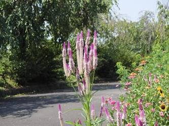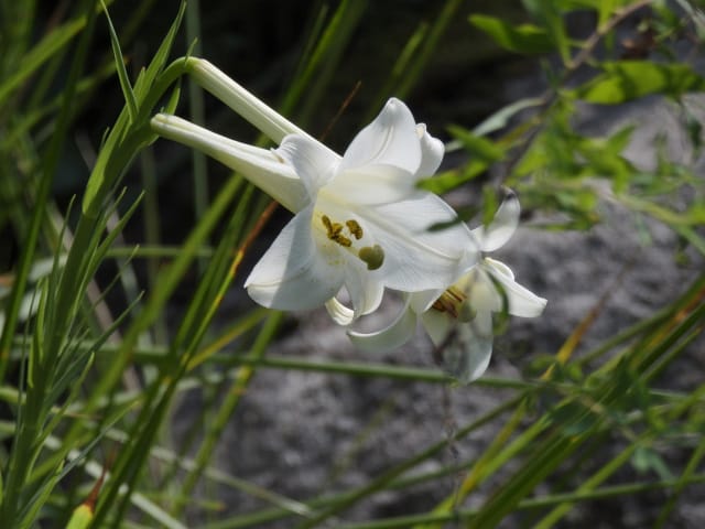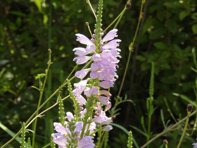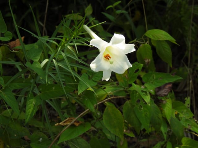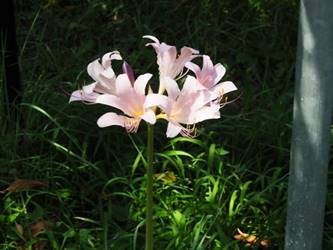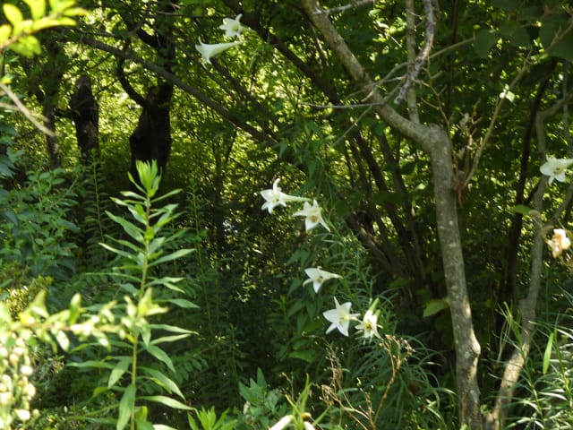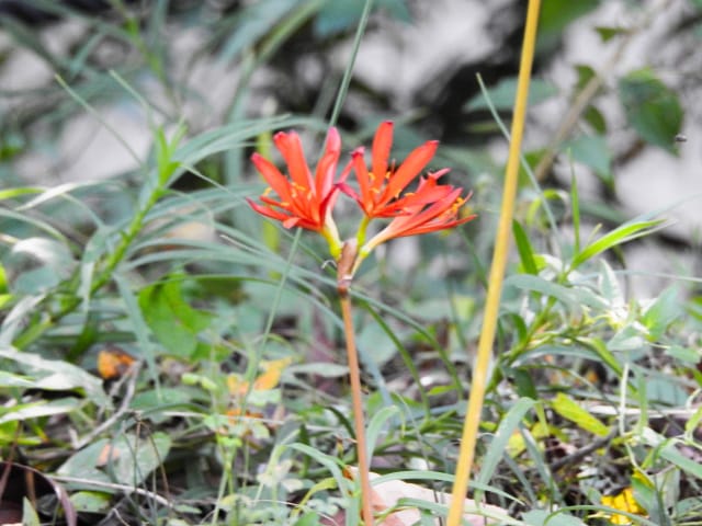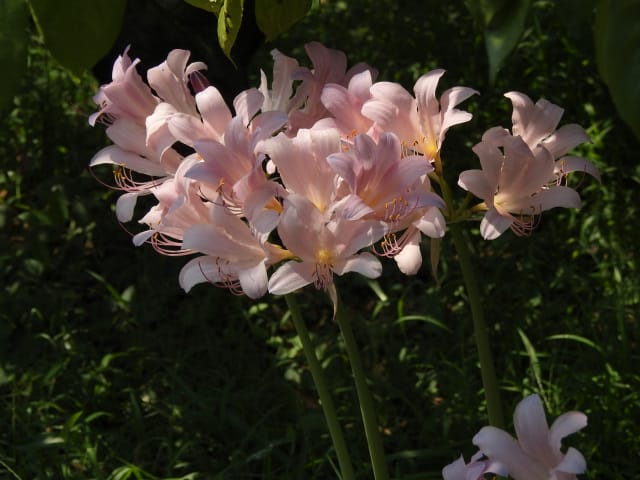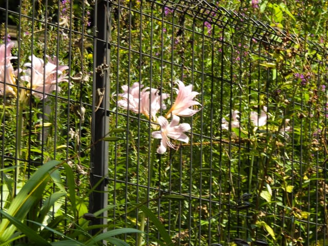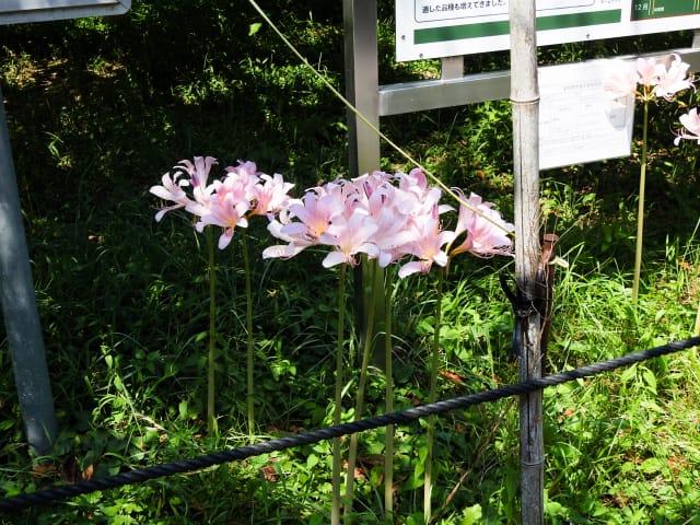 名古屋市守山区東谷山フルーツパーク25/08/19 ナツズイセン・キツネノカミソリ・ニクイロハナショクシャ・タヌキノカミソリ・カリガネソウ・新規鉢植え品、などの開花、タカサゴユリ・エビスグサなどの残留開花、などを期待して訪れました。8月8日に引き続いての訪問です。 ナツズイセンは、スモモ園東端で30株程が開花し見頃でしたが、もう一か所の生息地である、花壇#2周辺では、芽生えすら確認できませんでした。 キツネノカミソリは、四季の花園で3株が開花し見頃で、初めての場所、本館北脇でも、3株程が開花していました。 旧ハス池脇のニクイロハナショクシャは、相変わらず、蕾の膨らみもありませんでした。 温室北西のタヌキノカミソリについても、芽生えすら確認できませんでした。 花壇のカリガネソウは、まだ蕾すら付けていませんでした。 新規鉢植え品としては、温室入り口で、発泡スチロール製の水箱で、サギソウが数輪開花し、熱帯果樹育成室前では、赤花のモミジアオイ1輪が開花していました。 タカサゴユリは、あちこちで開花し、見頃でした。 花壇のエビスグサは満開になっていましたが、カンカン照りの中、接写する気が起こりませんでした。 他には、 ロックガーデンで、カクトラノオが数株咲き出し、見頃でした。 花壇では、他に、ヤリケイトウが見頃を継続し、セイヨウニンジンボク・ブータンルリマツリなどが咲き残っていました。 熱帯果樹育成室前では、鉢植えのタイタンビカスが開花し見頃でした。 北門南の芝生では、オオシロカラカサタケらしき茸が、数本見つかりました。 旧ハス池では、ハスが咲き残り、チョウトンボも無事でした。 |