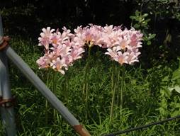 名古屋市守山区上志段味字白鳥: アレチケツメイ(咲き出し)・マルバルコウ(咲き出し)・チョウマメ(咲き出し)・ナツズイセン(開花) ポンテデリア・リュウキュウアサガオ(終盤) セスバニア・ビスピノサ?(蕾) 名古屋市守山区東谷山フルーツパーク 新規開花(ナツズイセン(30株&見頃)・キツネノカミソリ(数株&見頃)・カクトラノオ(数株)) 新規開花鉢植え品(サギソウ(数輪)・モミジアオイ赤(1輪)) 継続開花(タカサゴユリ・バショウ科‘地湧金蓮’・ノウゼンカズラ・バショウ、など) 花壇継続開花(エビスグサ・ヤリケイトウ・セイヨウニンジンボク・ブータンルリマツリ、など) 継続開花鉢植え品(タイタンビカス・ペトレア青・デュランタ、など) 実(ナツメ、など) その他(オオシロカラカサタケ?・チョウトンボ) |
