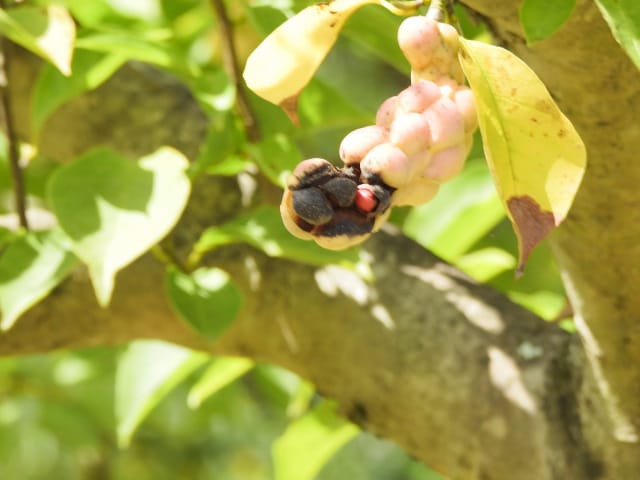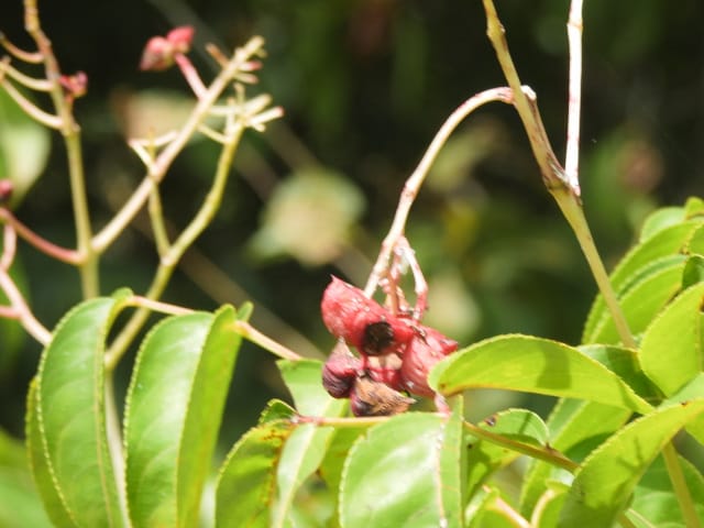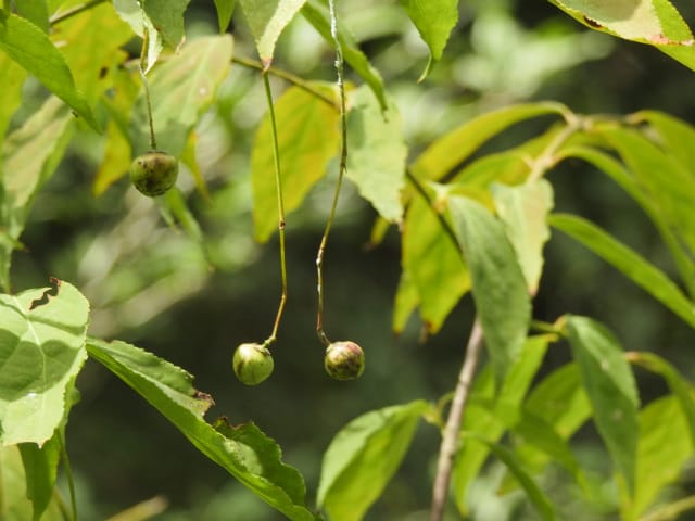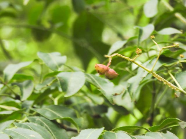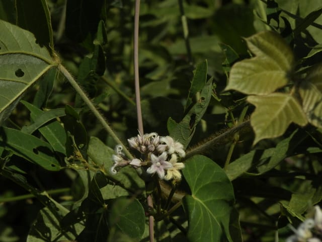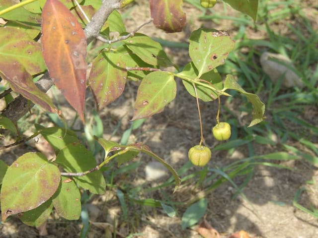 愛知県春日井市廻間町築水池南岸道25/08/28 ガガイモ・ボントクタデの開花を期待して訪れました。8月13日に引き続いての訪問です。 ボントクタデは、まだ開花には至っておらず、撮影をパスしました。 時刻は、11時。 少し早いですが、日陰になっていた湖水広場のテーブルで昼食を済ませ。暫し休憩。 ガガイモは、築水池堰堤金網柵の内側で数花序が咲き出していました。 他には、アズキナシ・タカノツメの実が目立って来ました。 |