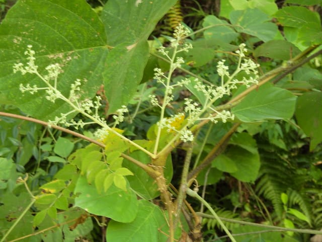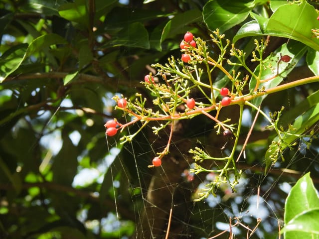 愛知県春日井市高森台外周林25/08/28 タラノキ・カエデドコロの開花、見頃のメドハギ、などを期待して立ち寄ってみました。 8月21日に引き続いての訪問です。 タラノキは、咲き出していましたが、開花していたのは、1株2輪のみでした。 カエデドコロも咲き出していましたが、触手不能な場所での開花で、仔細は不明でした。 メドハギは、1花序3輪の開花に留まりました。 |