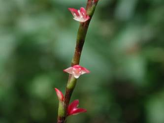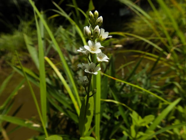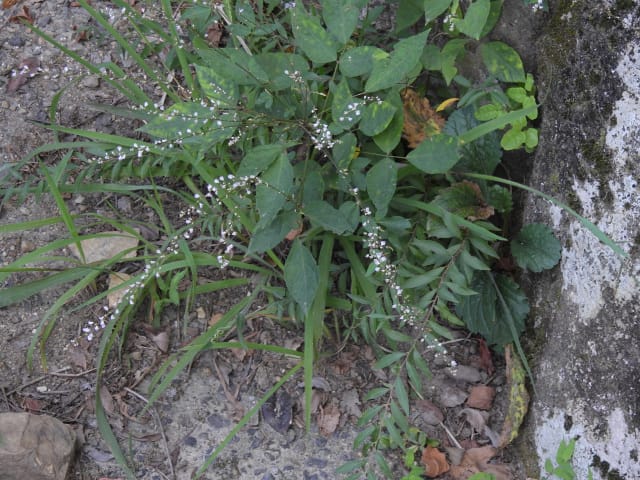 愛知県春日井市少年自然の家野草園&脇25/08/28 野草園では、ミズギボウシが、多数の花穂の中、3輪程、開花していました。 野草園脇では、 ミズヒキ・トウバナ・センニンソウ・ウリクサ・キツネノマゴが咲き出し、 ゴンズイが実を付け、ツリバナの実が目立って来ました。 8月13日に引き続いての訪問です。 |