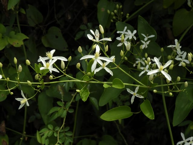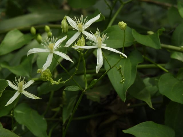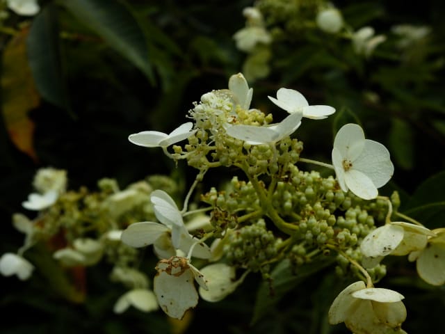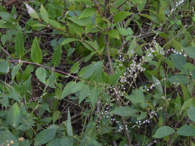 愛知県春日井市廻間町農道脇25/08/28 センニンソウ・ヒメジソの開花、ネコハギの継続開花、などを期待して訪れました。 8月13日に引き続いての訪問です。 センニンソウは、あちこちで咲き出していましたが、満開までには、もう少し時間が掛かりそうでした。 ヒメジソは、今年も群生していますが、まだ開花には至っていませんでした(撮影をパス)。 ネコハギは、1花序1輪の継続開花に留まりました。 ノリウツギが咲き残っており、ついでに撮影してきました、 |
