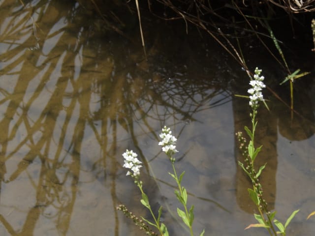 愛 知県春日井市廻間町ビオトープ25/08/28 アカバナ・クサネムの開花、シデコブシの弾けた実、などを期待して立ち寄ってみました。 8月13日に引き続いての訪問です。 アカバナは、2株2輪が開花しており、接写して来ました。 クサネムも、1株2輪が開花していました。 シデコブシの実は、1株2個程を確認しましたが、まだ成熟していない感じでした。 他には、ヌマトラノオが、多数、残留開花していて、小花を接写して来ました。 |