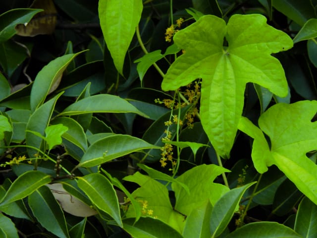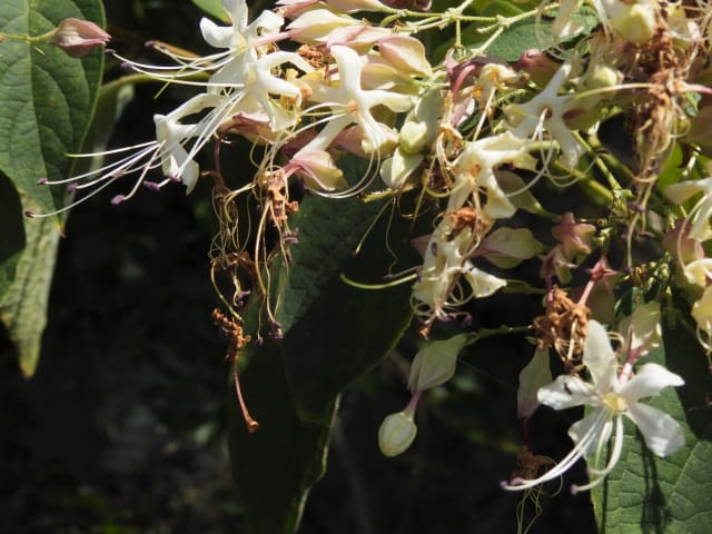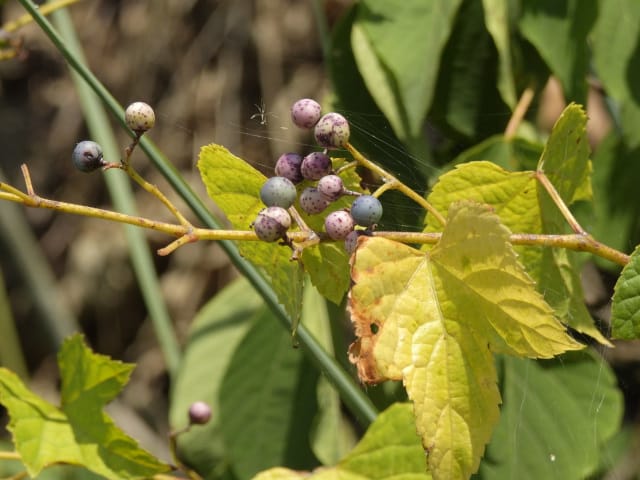 愛知県春日井市高森台外縁部25/08/28 アマチャヅル・クズの開花を期待して訪れました。8月13日に引き続いての訪問です。 アマチャヅルは、開花寸前の蕾、になっており、 クズも蕾を付けていました。 ヌルデが蕾を付け、クサギ・ノウゼンカズラが残留開花し、アカメガシワの弾けた実・色付いたノブドウの実、も、健在でした。 |