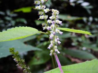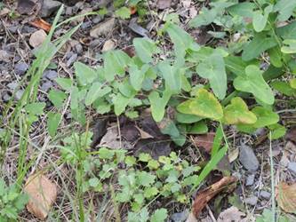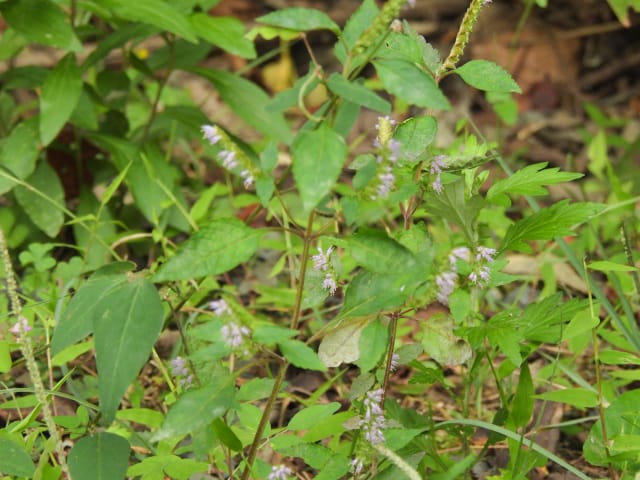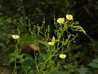 愛知県春日井市廻間町弥勒の森25/10/10 アケボノソウ・ヤクシソウ・ノコンギク・ナギナタコウジュ・メナモミ、の開花、レモンエゴマ・シュウブンソウ・ウマノスズクサ、の残留開花、キチジョウソウ・ツワブキ、の咲き出し、茸各種(タマゴタケ・クチベニタケ・オオワライタケ?、など)、色付いたヤブムラサキの実、などを期待して訪れました。今年の春以降の、久々の訪問です。 曇り勝ちの空の下、腰痛を抱えながらの訪問で、目的の場所(表道林道の終点)まで、辿り着けるか否か、不安でしたが、表道林道は、思いの外、平坦で、無事に目的を完遂する事が出来ました。 表道林道の標識番号(以下、「P○○」と略記)20番の少し東にある、アケボノソウは、小株1株に留まり、且つ、極小の蕾状態でした。 表道林道の、みろく休憩所付近にある、ヤクシソウも、極小の小株1株に留まり、極小の蕾を付けていただけでした。 表道林道の、みろく休憩所付近から、林道終点に掛けてあるはずのノコンギクは、2株程に留まり、萎れかけの花1輪の開花に留まりました。 表道林道の裏道分岐にある、ナギナタコウジュは、数株が開花し、見頃でした。 メナモミは、表道林道のあちこちで群落を作り、満開で見頃でした。 レモンエゴマは、弥勒山近道出口付近、表道林道P20東、で、数株が咲き残り、小花の接写が叶いました。 シュウブンソウは、弥勒山近道出口付近で、終盤の株1株に、遭遇出来ました。 表道林道の裏道分岐にある、ウマノスズクサは、草体は茂っているものの、花の残留は、確認できませんでした。 表道林道P18南にある、キチジョウソウ・ツワブキは、まだ花芽すら確認出来ませんでした。 茸では、 タマゴタケが、何時もの県道脇で見つかり、幼菌1株、萎れ掛け?1株、に遭遇しました。 クチベニタケは、表道林道のP19東脇で、4株が固まっていて、接写が叶いました。 オオワライタケ?は、表道林道P19東脇の、何時もの大木の根元で、群生していました。 他に、イヌセンボンタケ?、オオキツネタケ?、が見つかりました。 ヤブムラサキの実は、2株程ありましたが、色付きは今一でした。 他には、 表道林道のみろく休憩所上では、ガマズミの実が稔り、イヌザンショウの実が弾けていました。 県道脇では、ヒメジソが群生開花しており、アキノンノゲシも3株程が開花していました。 弥勒の森の散策を終え、春日井グリンピアに戻ってきたのは、12時半。 春日井グリンピア発のバス発車時刻の13時53分までには、かなりも待ち時間があり、足腰も、まだ「持ちそう」なので、自宅まで、少年自然の家野草園経由で、徒歩にて、帰宅する事としました。 |