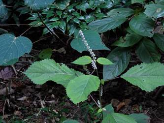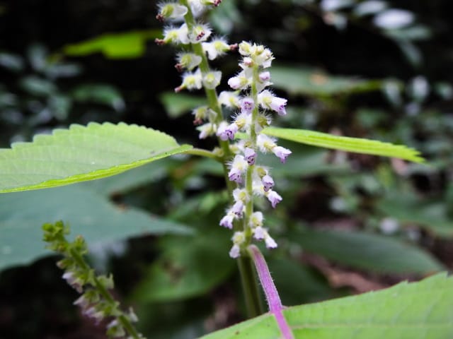 愛知県春日井市高森台4丁目民家庭先25/10/10 南方海上の台風23号は、予想通りの進路を辿り、この日は、曇りだが雨が降ることは無いものの、翌日からは、暫く雨勝ちの天気が続く、と言う天気予報。 10月7日の弥勒の森のリベンジに訪れるのは、この日しかない、との事で、調子の悪い腰で、どこまで行けるのか、不安を抱えながら、出掛ける事としました。 最寄りコンビニで、昼食のおにぎりを購入し、曇り勝ちの空の下、「高森台4丁目バス停」に向かいました。 行路では、何時もの民家庭先で、ミョウガが1輪開花しており、別の民家では、ムラサキゴテンが見頃で、 何時ものハイビスカスローゼルが咲く民家庭先では、2種が開花していました。 |