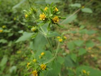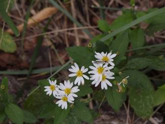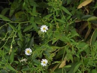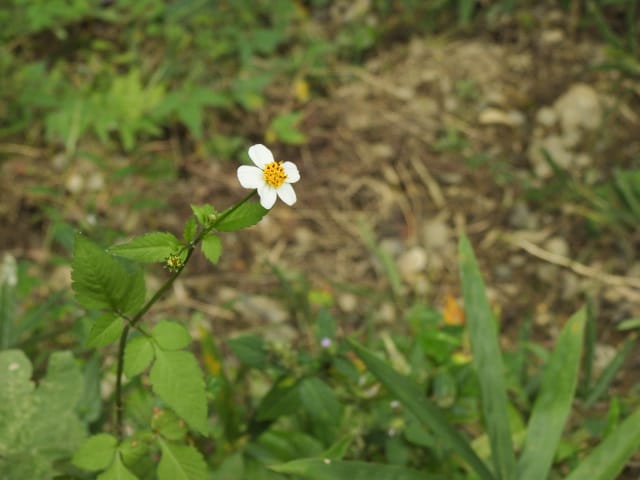 愛知県春日井市廻間町宮滝大池堰堤25/10/10 宮滝大池の水は干上がっており、 堰堤では、待望のシロノセンダングサが、1株1輪だけですが、開花していました。 9月24日に引き続いての訪問です。 |