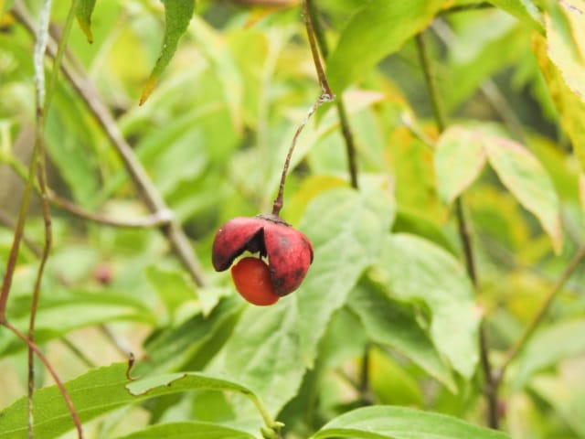 愛知県春日井市少年自然の家野草園&脇25/10/10 ツリバナの弾けた実を期待して立ち寄ってみました。9月24日に引き続いての訪問です。 野草園脇のツリバナの実は、3個ほどが弾けており、野草園では、ミズギボウシが残留開花していました。 |