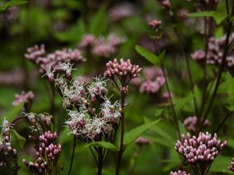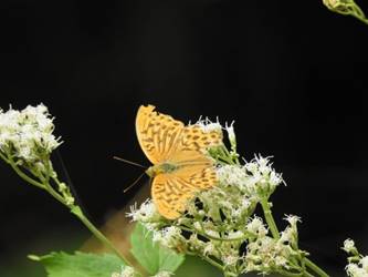 愛知県春日井市廻間町ビオトープ25/10/10 フジバカマの開花、そして、アサギマダラの来訪、を期待して立ち寄ってみました。 9月24日に引き続いての訪問です。 群生しているフジバカマが咲き出し、同じ場所のヒヨドリバナも満開になっていましたが、薄曇りの天気の為か、アサギマダラの来訪は無く、1頭のミドリヒョウモンがヒヨドリバナを来訪していた、だけでした。 |