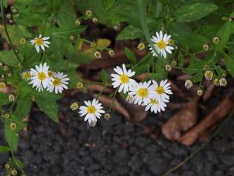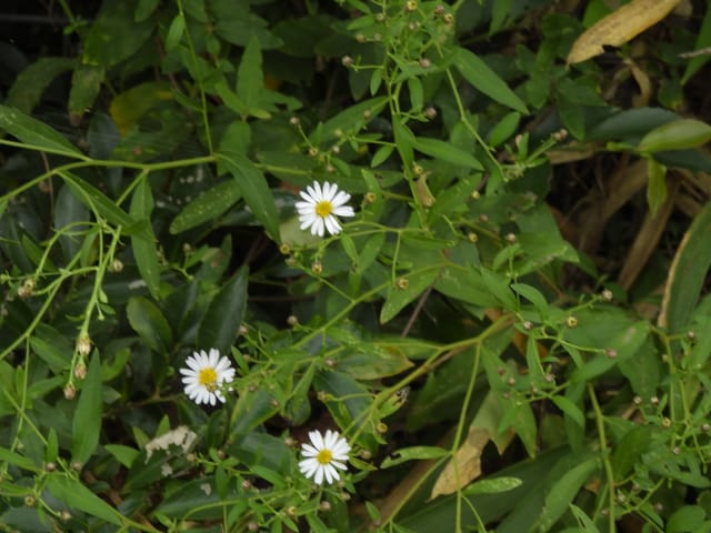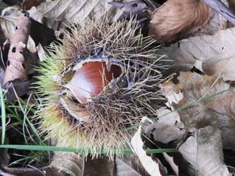 愛知県春日井市高森台外周林25/10/10 自宅への帰路、10月7日に引き続いて訪れた、高森台外周林外側では、 ノコンギクが咲き出し見頃で、スダジイの実が目立っており、落果したクリの「イガ」が弾けていました。 |