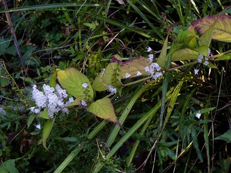 春日井市高森台4丁目民家脇:シュウメイギク赤(満開&見頃) 春日井市高森台4丁目バス停付近外縁部:ネズミモチ蒼い実・ヌルデ実 春日井グリンピア 新規開花(ヒイラギモクセイ(1株数輪)・ツルグミ(見頃)・ナワシログミ(見頃)・ソテツ雄花序(枯花) リンドウ(ハーブ園)・イエロー・マジェスティ(ハーブ園)・サルビア=ライムライト(ハーブ園) コウヤボウキ(数輪)・タイワンホトトギス(2輪)・シュウメイギク白(2輪)・子福桜 ) 継続開花(ホソバヒイラギナンテン(満開)・メキシカンブッシュセージ(ハーブ園)・シュウメイギク赤・シュウメイギク八重赤 プルメリア(温室1輪)、など ) 返り咲き(オオデマリ) 蕾(イソギク・ツワブキ・アツバキミガヨラン・ヤツデ花芽・ソテツ雌花序) 弾けた実(ゲンノショウコ神輿・ナンキンハゼ・コマユミ・アケビ・ミツバアケビ・ヒオウギ(ヌバタマ)・コブシ・クサギ) 実(ヤブコウジ・ハナミズキ・トベラ・コトネアスター・カリン・ギンバイカ・ムベ・マユミ・カラタチ・サワフタギ・ソヨゴ・ピラカンサ マメナシ・モチノキ・シナヒイラギ・コクチナシ・シャリンバイ・センダン・ウメモドキ・ナツハゼ、など ) 春日井市廻間町弥勒の森 開花(アケボノソウ(1株3輪)・ヤクシソウ(2株20輪)・キダチコンギク(数株)・ノコンギク(1株) ) 蕾(ツワブキ・キチジョウソウ花芽) 実(ムラサキシキブ・フユイチゴ花後) 茸(オオワライタケ終盤) 春日井市少年自然の家管理棟東脇: イイギリ実(見頃)・ツルウメモドキ実・イボタノキ実・ノイバラ実・サルトリイバラ実・クサギ弾けた実・シャリンバイ実 春日井市高森台外周林: ハギ(満開)・ノコンギク(満開)・スダジイ弾けた実・ヤマコウバシ実・トベラ実・ムラサキシキブ実・シャリンバイ実 |