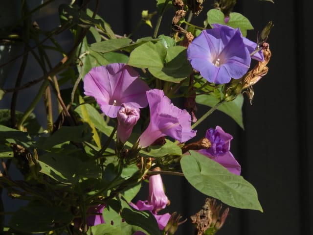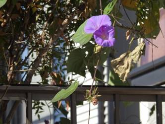 愛知県春日井市高蔵寺町車道脇民家25/11/22 この日は、朝晩は冷えるものの、秋晴れで、小春日和になる、との天気予報。 薄手のジャンパーを羽織って、草花散策に出掛けました。 東谷山フルーツパークへの往路、JR高蔵寺駅から南に延びる車道脇民家では、スイフヨウ・リュウキュウアサガオが咲き残っていました。 11月7日以来、2週間ぶりの訪問です。 |