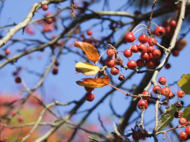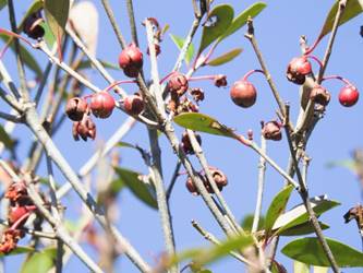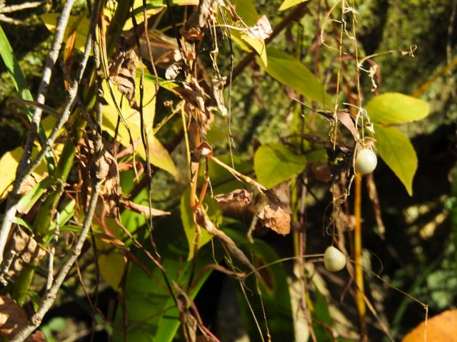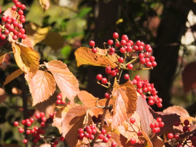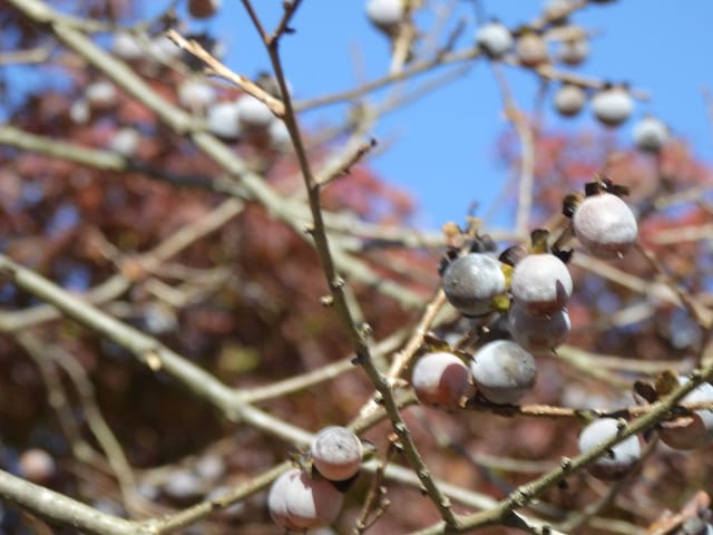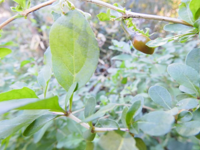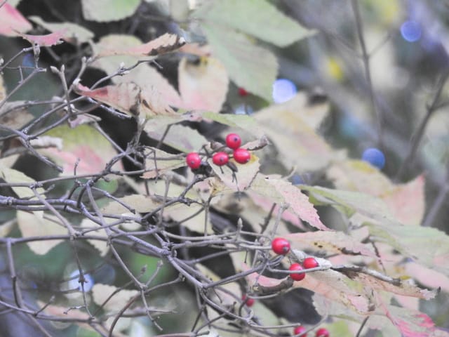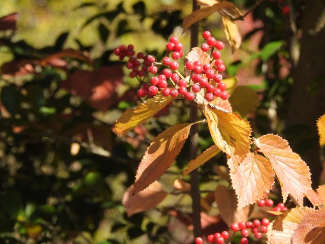 愛知県春日井市高森台外周林外側25/11/22 外縁部から自宅への帰路、来た時と同じ経路を辿るのは芸が無いので、外周林の外側を経由して、帰る事としました。11月6日に引き続いての訪問です。 3株のコバノガマズミの実が見つかり、初株のムラサキシキブの実も、見付かりました。 |