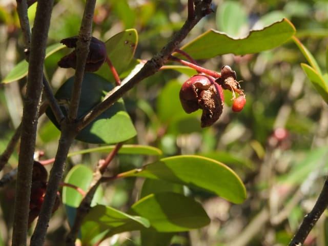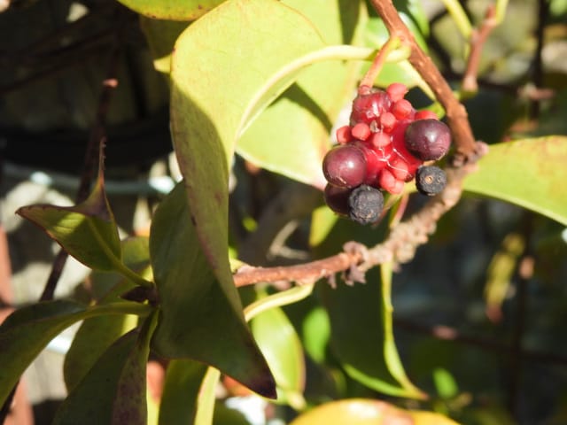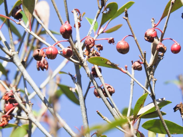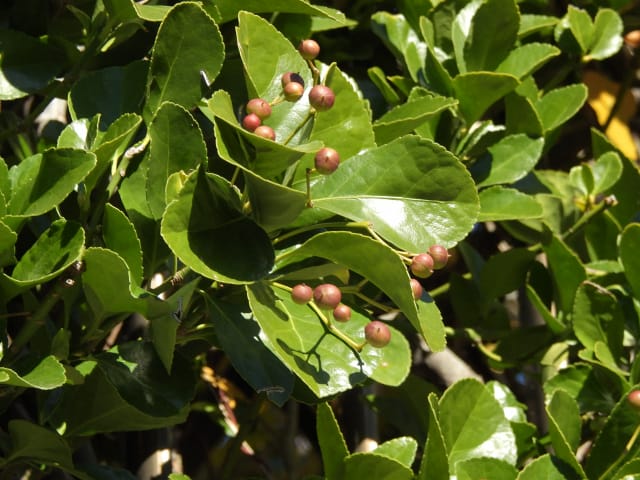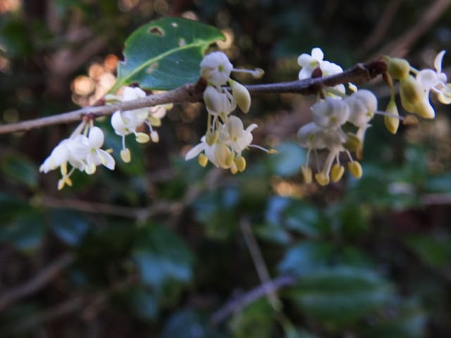 愛知県春日井市高森台外周林内側25/11/22 引き続いて、ヒイラギ雌花の開花、トベラの弾けた実、などを期待して、自宅付近外周林内側を訪れて見ました。 10月14日に引き続いての訪問です。 ヒイラギ雌花は、雌株1株数花序が咲き出し見頃でしたが、トベラの実は、弾けていませんでした。 来たついでに、シャシャンボの実も、撮影して来ました。 |