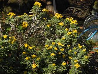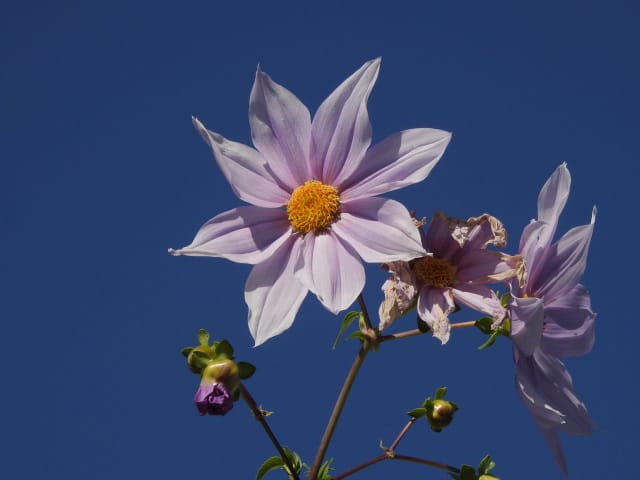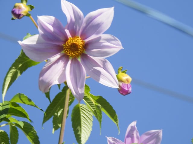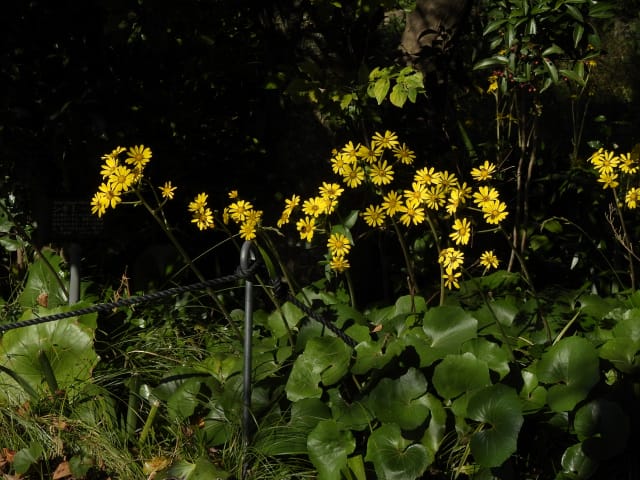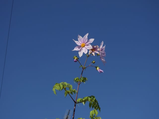 愛知県春日井市自宅付近民家庭25/11/22 この日の朝、自宅から、東谷山フルーツパークに向うべく、最寄りバス停に急ぐ中、経路の民家庭で、キダチダリアの開花を確認しました。カメラを取り出す余裕もなく、先を急いだのですが、 帰路、撮影の為、立ち寄ってみました。 キダチダリアは、3株数輪が開花していましたが、花は、日差しの方向から、少し外れた方向を向いていました。 |