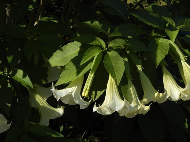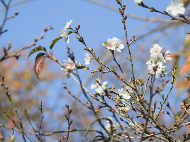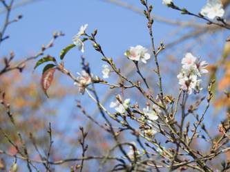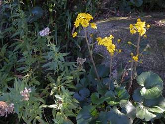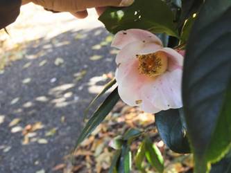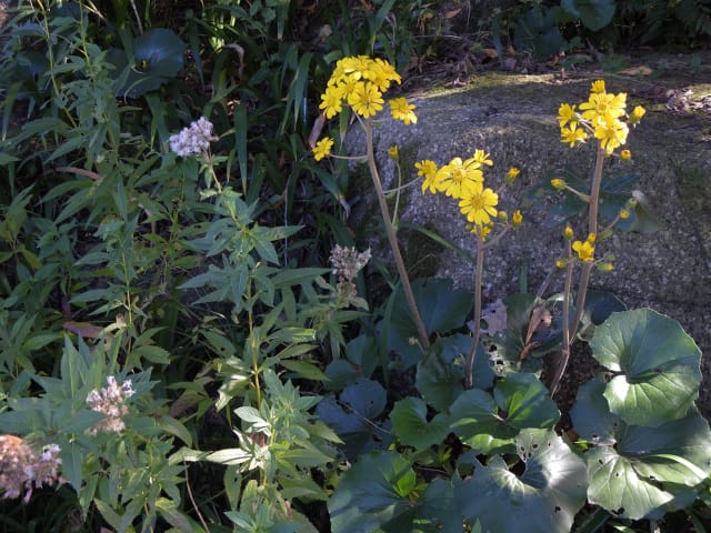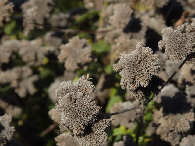 名古屋市守山区東谷山フルーツパーク25/11/22 キチジョウソウ・フイリヒイラギ・白花タツナミソウ・新規椿・イソギク・新規鉢植え品、の開花、見頃のライオンノミミ・ダイヤモンドリリー・ツワブキ、ゴマノハグサ科アサリナの残留開花、ザクロ・マユミ・マサキ・キフクリンキンマサキ・モッコク・ニシキギ、の弾けた実、モミジの紅葉、などを期待して訪れました。11月7日以来、2週間ぶりの訪問です。 ロックガーデンのキチジョウソウは、相変わらず、原野状態で、花芽の確認も叶いませんでした。 本館北東脇のフイリヒイラギ2株は、まだ花芽状態でした。 温室南生垣の白花タツナミソウは、2花序が全開し見頃でした。 新規開花椿は、ミカン園南の、関戸太郎庵、1品種に留まりました。 花壇のイソギクは開花し、満開&見頃でした。 新規鉢植え品の開花は、確認できませんでした。 花壇のライオンノミミは、脇のマウンテンミントの花後の姿に目を奪われたためか、帰宅するまで、見忘れたことに気が付きませんでした。飛蚊症がひどいためか、老人性痴呆症のためか、原因不明です。 温室入り口鉢植えのダイヤモンドリリーは、開花数が2鉢数株に増えていました。 ツワブキは、あちこちで見頃の株がありましたが、まだ未開花の株も多数、見受けられました。 ゴマノハグサ科アサリナは、温室入り口鉢植えの白花が1鉢2輪、売店南入り口脇鉢植えのピンク花が数輪、咲き残っていました。 旧ハス池脇のザクロの実は、弾けることなく枯れてしまう感じでした。 四季の花園脇のマユミの実は、多数の実のうち、1つだけ弾けて種子が無くなっていましたが、他は、全く弾けていませんでした。 ビワ園西脇の、マサキ・キフクリンキンマサキの実は、まだ弾けていませんでした。 本館南東脇のモッコクの実は、大多数の実が弾け、赤い種子が果肉から飛び出していました。 日本庭園池北脇のニシキギの弾けた実は無事で、見頃を継続していました。 モミジの紅葉は、日本庭園北東端で、見頃一歩手前、でした。 他には、 キウィ園南脇のエンゼルトランペット2株が2番花を咲かせ見頃で、蕊の様子も伺えました。 |