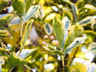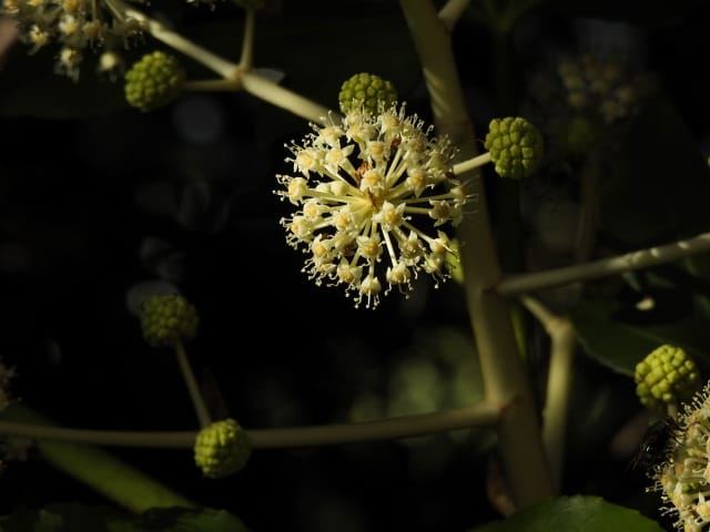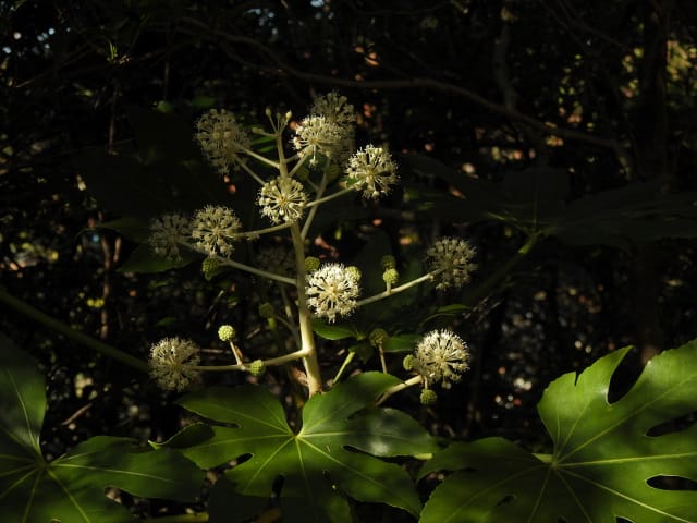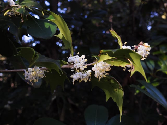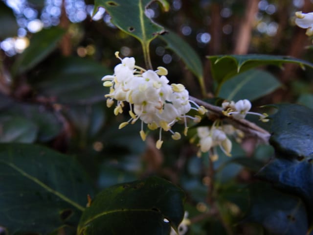 愛知県春日井市高森台外縁部25/11/22 ヒイラギ雌花・ヤツデ、の開花、見頃のヒイラギ雄花、ヤマコウバシ実の残留、などを期待して、自宅付近高森台外縁部(外周林北脇道路の北傍)を訪れました。 11月14日に引き続いての訪問です。 ヒイラギ雌花の開花はありません(あっても、まだ花芽)でしたが、ヤツデは、1花序が全開していました(蕾が2花序)。 ヒイラギ雄花は、前回の咲き出しの株が満開&見頃となり、更に、別の2株が咲き出していました。 ヤマコウバシの実は、1株数個が残留していました。 |