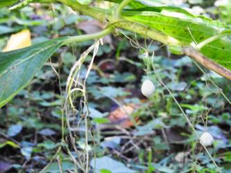 名古屋市守山区上志段味字白鳥25/11/22 東谷山フルーツパークへの往路復路、 ヒイラギ・キチジョウソウの開花、クコの色付いた実、マサキの弾けた実、などを期待して、2週間ぶりに訪れた、上志段味字白鳥では、 畑#2脇のキチジョウソウは、花芽すら見つかりませんでした。 畑#3西脇のクコの実は、3個程見つかり、うち1つが、赤く稔っていました。 金網柵の場所では、スイフヨウが1輪、残留していたものの、マサキの実は蒼いままで、弾ける様子は感じられませんでした。 民家脇では、ヒイラギ雄株1株が咲き出し、ガマズミの実、エゾノコリンゴの実、が元気でした。 水路脇民家のリュウキュウアサガオは、多数の花が残留していましたが終盤で、大半が萎れ掛けていました。 フルーツパーク第4駐車場北西脇(以下、「P4北西脇」と略記)のビナンカズラは、実が赤く稔ってきました。 |