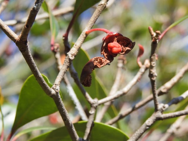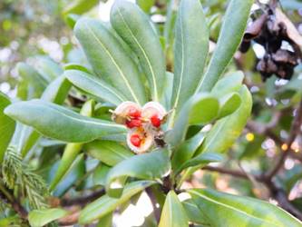 愛知県春日井市高森台外周林内側脇25/11/22 一旦自宅に立ち寄って、リュックザックを下ろし、カメラ2台だけを持って、草花散策を継続しました。 外周林内側脇の、トベラの弾けた実を期待して、立ち寄ってみました。11月6日に引き続いての訪問です。 トベラの実は、1株2花序3個が弾けていました。 |
