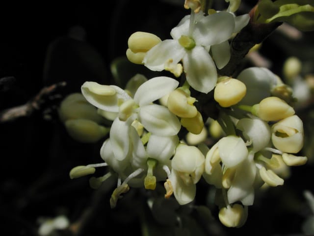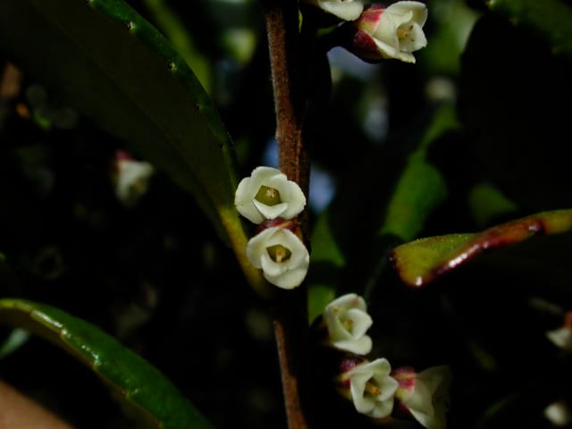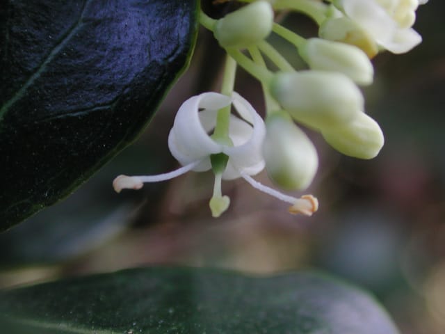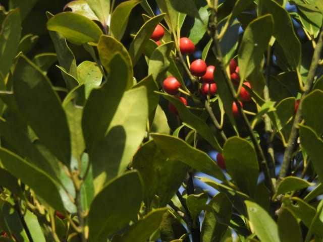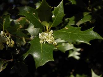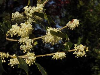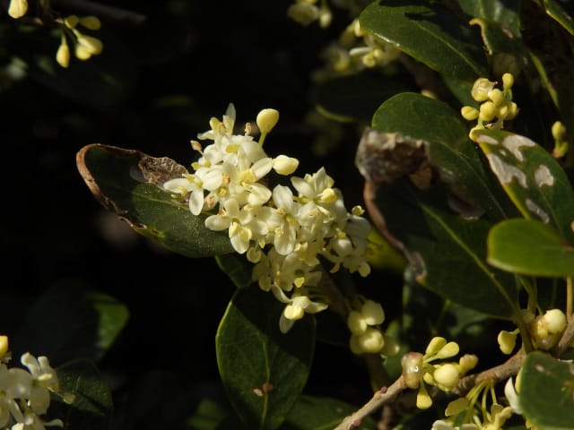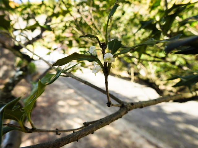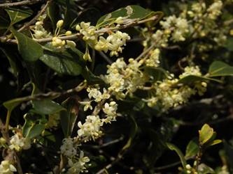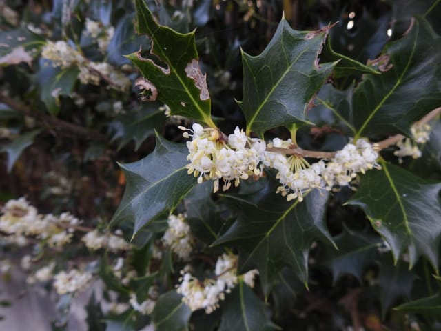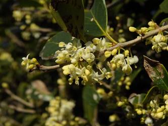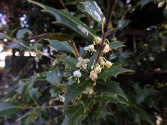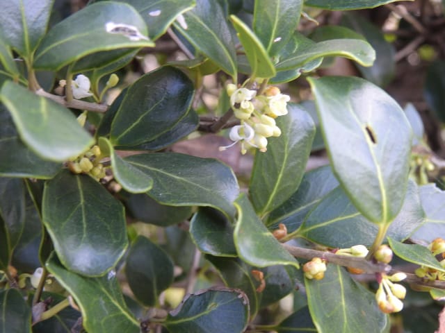 愛知県春日井市高森台コンビニ付近民家生垣25/11/24 11月19日に、旧東高森台小学校を訪れた際の帰りがけ、お馴染みの民家生垣(ハマボウのある民家の生垣)がマルバヒイラギの生垣で、しかも沢山の蕾を付けている事に、気が付きました。 それで、この日、 春日井グリンピアへの往路復路、立ち寄ってみました。 マルバヒイラギは、咲き出していましたが、花が過密で、良い写真には、なりませんでした。 「過ぎたるは及ばざるが如し」、ですね。 |