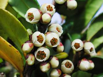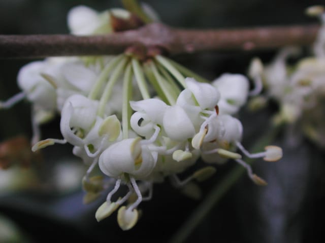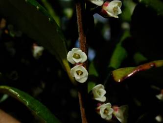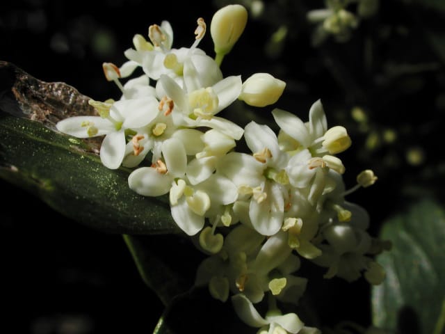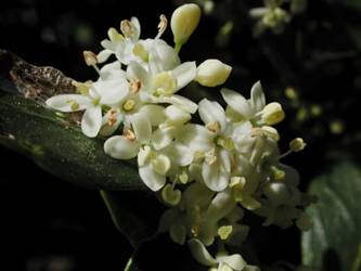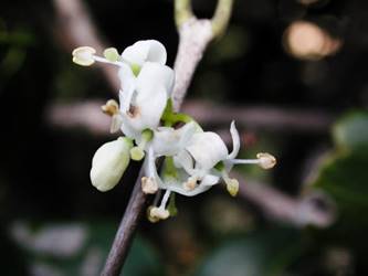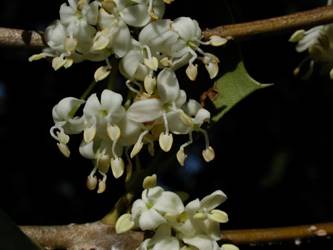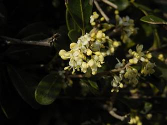 愛知県春日井市高森台コンビニ付近民家脇25/11/24 春日井グリンピアへの往路復路(往路は乗り合いバス経由、復路は徒歩)、高森台4丁目の、コンビニ付近の1軒の民家脇では、ヒイラギ雌花が咲き出し、ヒイラギ雄花は満開になっていました。 11月19日に引き続いての訪問です。 雌花は、咲き出し、とあって、開花数が少なかったのですが、雄花は混みあい過ぎて、状態は今一でした。 |