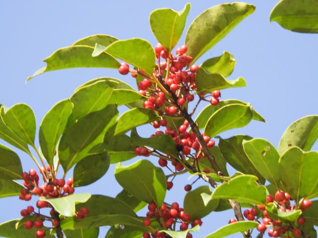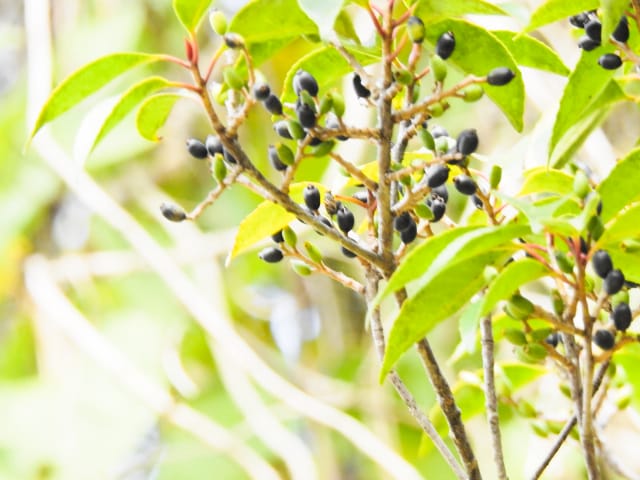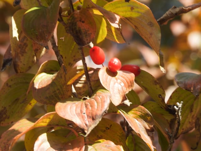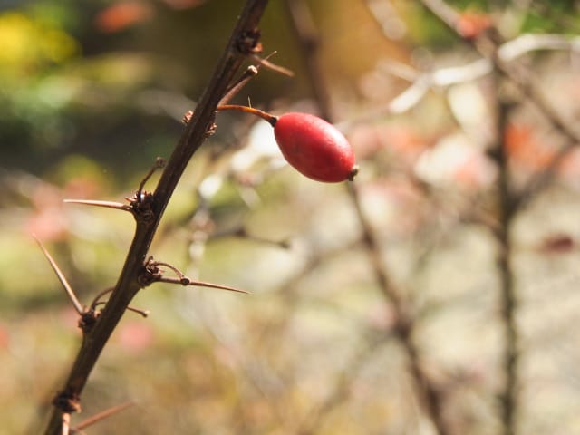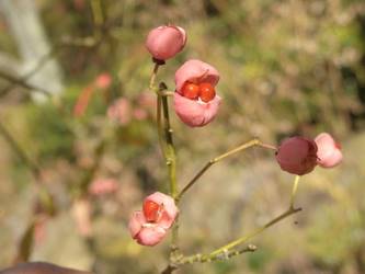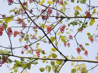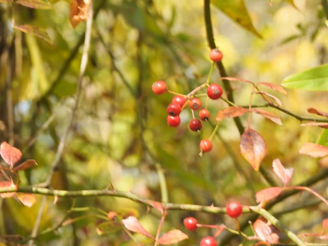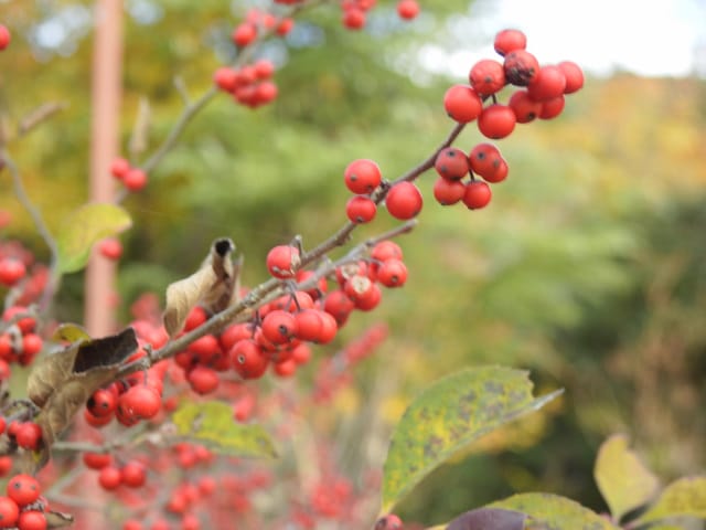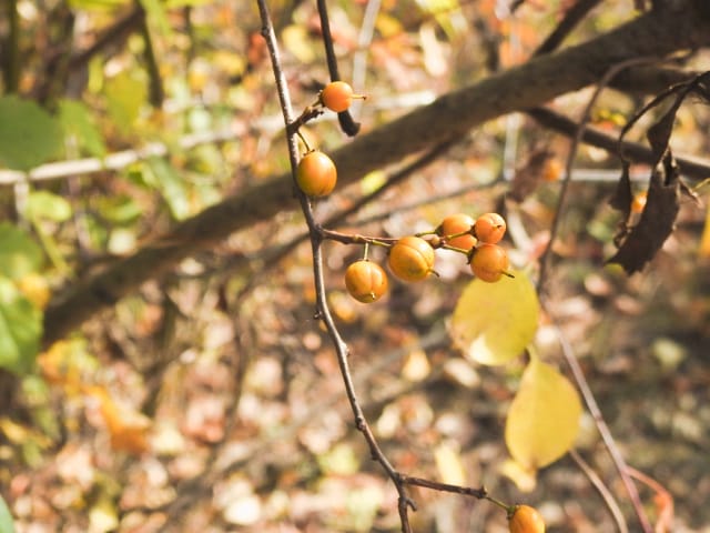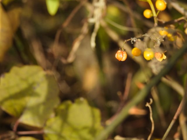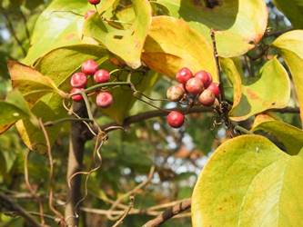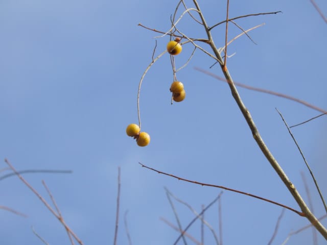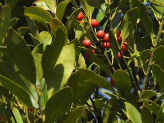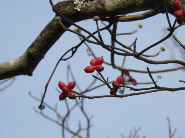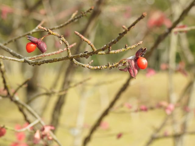 愛知県春日井市少年自然の家管理棟東脇25/11/24 ツルウメモドキの弾けた実を期待して立ち寄ってみました。11月19日に引き続いての訪問です。 ツルウメモドキの実は、2個が弾けていました。弾けていない実が沢山あり、これからも期待できそうです。 クロバイが実を付け、サルトリイバラの実が稔り、イイギリ・イボタノキ・ノイバラの実が見頃を維持していました。 |