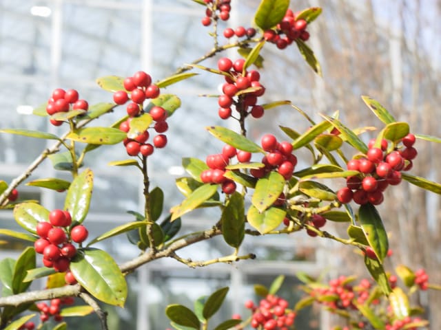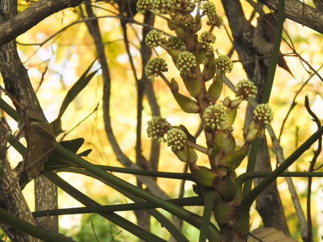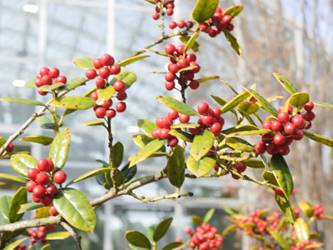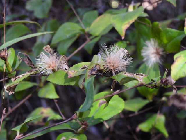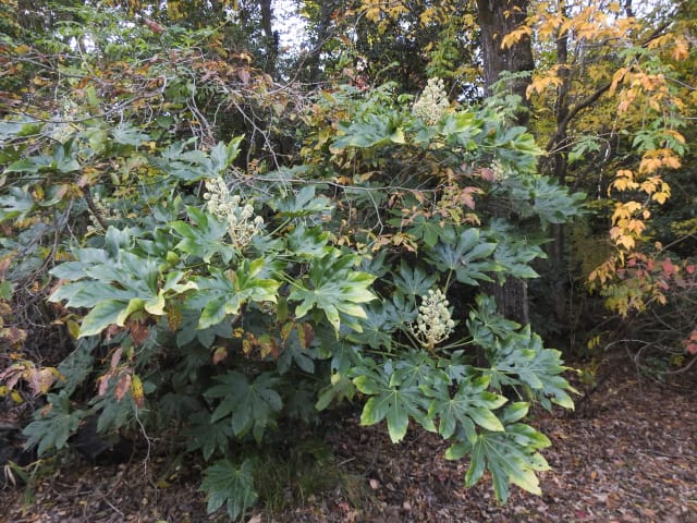 愛知県春日井市春日井グリンピア25/11/24 マルバヒイラギ・ヤツデ・ツバキの開花、見頃のヒイラギ雄花・ハマヒサカキ雄花、ハマヒサカキ雌花・サフランの残留開花、サンシュユの実、見頃のトベラ弾けた実・ソテツ実・ムクロジ実・オモト実、マユミ弾けた実の残留、などを期待して訪れました。 11月19日に引き続いての訪問です。 マルバヒイラギは、見本園・生垣見本園の両者で、雌株が咲き出していましたが、花付きは今一でした。 ヤツデは、梅園東屋脇の株、外縁部駐車場西の株、共に、まだ蕾でした。 ツバキは、今季初めて訪れた椿園で12種(西王母・初音・紅妙蓮寺・寿老庵・初嵐・福光の赤・久寿玉・太郎庵・祐閑寺名月・東方朔・傾成・太神楽)、菖蒲池北東の乙女椿、の、合計13種、が開花していました。なお、椿園のツバキについては、別ページ記載とし、ここでは、代表として、東方朔、を掲載しておきます。 万葉苑西のヒイラギ雄花1株は、日陰の中、相変わらず花付きが悪く、数輪が開花していただけでした。 ハマヒサカキは、見本園生垣の株で、雄花が咲き出し、雌花が満開終盤で、見本園東脇の雄花が見頃になっていました。 ハーブ園のサフランは、満開を維持していました。 今冬初めて訪れた梅園脇では、ボケの開花は見られませんでしたが、サンシュユは、東脇の株、西脇の株、共に、実を付け見頃でした。 外縁部車道東脇のトベラの実は、1個の弾け、に留まりました。 万葉苑西のソテツの実は、雌花序2株のうち、開いているのは、前回同様、1株だけで、見える実も2個留まりでした。 アスレチック脇のムクロジの実は、落葉が進み、見易くなり、外皮も半透明になってきました。 万葉苑のオモトの実の色付きは今一でした。 万葉苑西脇のマユミの弾けた実は、多数残留し、見頃を継続していました。 他には、 久々に訪れた、大久手池東では、クサギの弾けた実が残留していました。 万葉苑西では、ヒイラギモクセイが1株数花序残留開花していました。花期の長さに驚きました。 万葉苑では、アオキの蒼い実が見つかりました。 万葉苑北脇では、コンギクかノコンギクか不明な株が、綺麗な紺色の花を付けていました。 温室では、ゴクラクチョウカが咲き続けており、1輪だけ、撮影してきました。 |