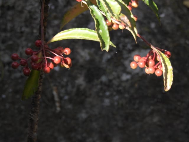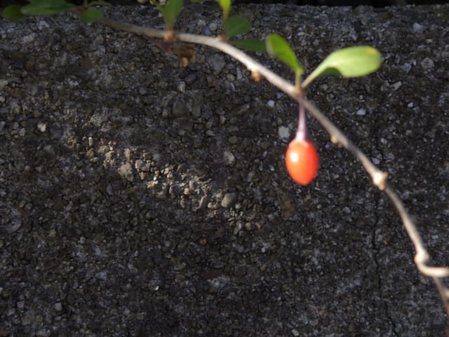 愛知県春日井市高森台自宅付近民家25/11/24 春日井グリンピアからの帰り道、往時に見た、高森台コンビニ付近のマルバヒイラギ・ヒイラギを、再撮影するため、急勾配の登り坂を回避べく、高森山公園経由で、帰宅する事としました。 民家生垣のマルバヒイラギ雌花、民家脇のヒイラギ雄花雌花、を撮影後、 久々に、自宅付近のクコ、ミセバヤの状態を見てみる事としました。 クコは、花期を終え、実が残留し、 ミセバヤは満開でした。 |