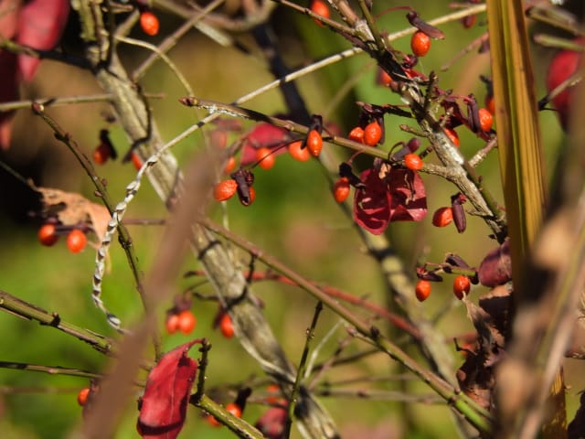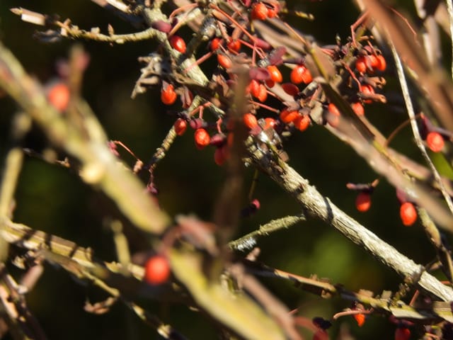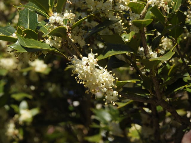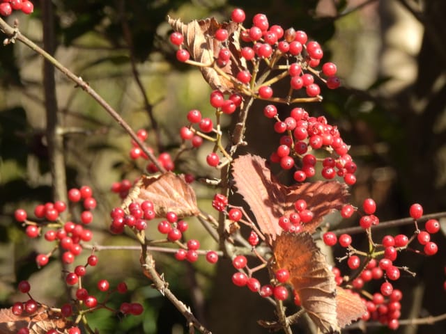 名古屋市守山区上志段味字白鳥25/12/06 この日は、最低気温が1℃で、最高気温が13℃になる、冬晴れ、との天気予報。 自宅を出て、最寄りバス停付近から眺める、伊吹山は冠雪し、9時現在、綺麗な姿を見せていました。 JR高蔵寺駅に降り立ち、徒歩で、東谷山フルーツパーク方面に歩を進めると、春日井市高蔵寺町車道脇民家のスイフヨウ・リュウキュウアサガオは、12月3日から4日に掛け初雪を届けた寒波の影響か、花期を終えていました。 キチジョウソウの開花、満開のヒイラギ雄株、マサキの弾けた実、ガマズミ実の残留、などを期待して訪れた、名古屋市守山区上志段味字白鳥では、 畑#2脇のキチジョウソウは、まだ花芽すら見当たりませんでした。今季は開花しないのかもね。 畑#3西脇のクコは、熟した実数個を付けていました。 民家脇では、ヒイラギ雄株が満開になり見頃で、ガマズミの実、エゾノコリンゴの実、ナンテンの実、が赤く輝き綺麗でした。 金網柵の場所では、マサキの実は弾けていませんでしたが、スイフヨウが名残花を付けていました。 水路脇民家のリュウキュウアサガオは、10輪以上の花を付けていましたが、全て萎れ花でした。 フルーツパーク第3駐車場(以下、「P3」と略記)北西脇のビナンカズラの実は、元気でした。 11月22日以来、2週間ぶりの訪問です。 |