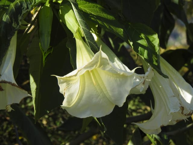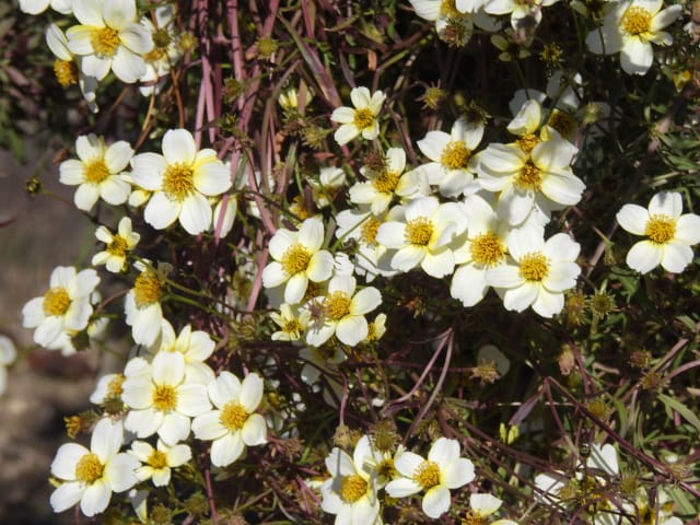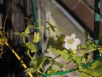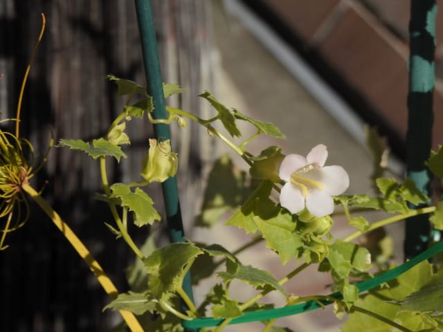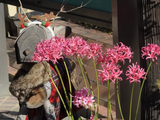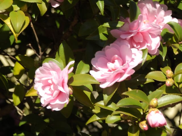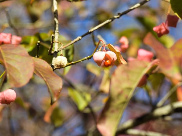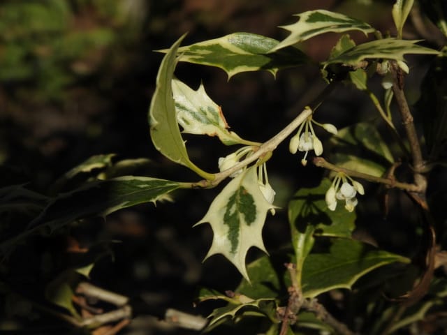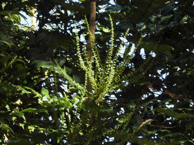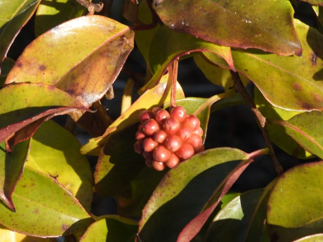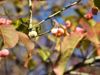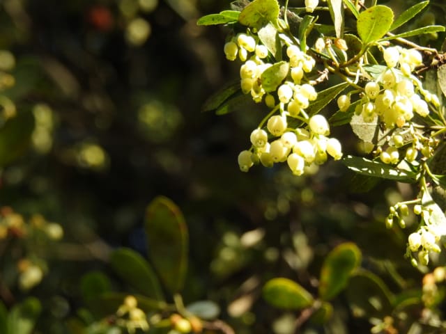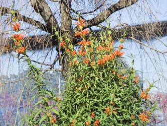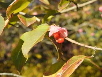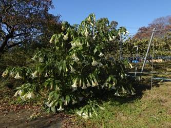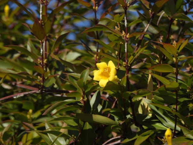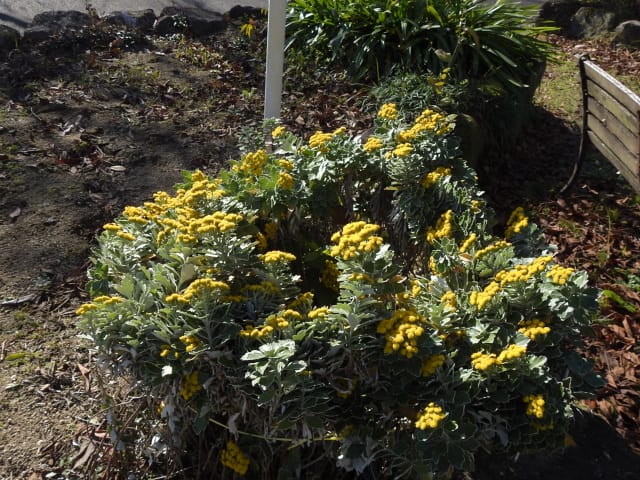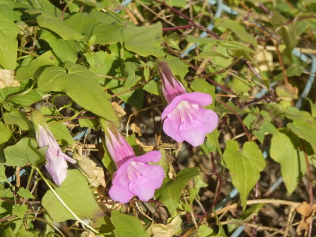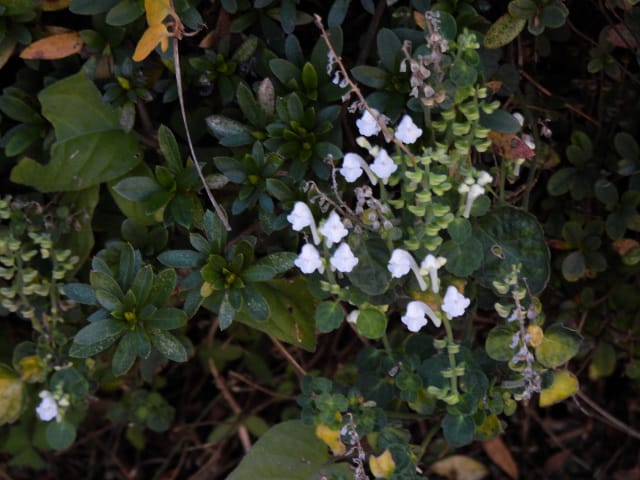 名古屋市守山区東谷山フルーツパーク25/12/06 キチジョウソウ・フイリヒイラギ・新規椿・オイワケヒイラギナンテン、の開花、見頃の、白花タツナミソウ・ライオンノミミ、ダイヤモンドリリー・ゴマノハグサ科アサリナ2種、の残留開花、マサキ・キフクリンキンマサキ・マユミ・ニシキギ、の弾けた実、山岳展望、などを期待して訪れました。11月22日以来2週間ぶりの訪問です。 ロックガーデンのキチジョウソウは、草体は茂っているものの、花芽すら見つけられませんでした。 本館北東のフイリヒイラギは、2株ともに咲き出していました。 ツバキの新規開花は2種(紅乙女椿・白侘助)に、留まりました。 四季の花園のオイワケヒイラギナンテンは、やっと蕾を付けたところ、でした。 温室南生垣の白花タツナミソウは、開花数が10株程に増えていて、見頃でした。 花壇のライオンノミミは、数株が開花し、こちらも見頃でした。 温室入り口鉢植えのダイヤモンドリリー、売店南入り口脇鉢植えのゴマノハグサ科アサリナ、は満開で見頃を維持しており、温室入り口鉢植えのゴマノハグサ科アサリナ白も、咲き残っていました。 ビワ園西脇の、マサキの実、キフクリンキンマサキの実は、共に色付いてきましたが、まだ弾けていませんでした。 四季の花園脇のマユミの実は、1株数個が弾け出し、赤みを帯びた種が顔を出していました。 日本庭園池北脇のニシキギの実は、2株で弾けていて、見頃を維持していました。 山岳展望は、冠雪した能郷白山・伊吹山が望めましたが、ここに到着した10時過ぎには、早くも雲が掛かりかけ、綺麗な姿の伊吹山を撮影する事は叶いませんでした。 他には、 日本庭園北東部のモミジの紅葉は、終盤でした。 旧ハス池北脇のメタセコイア黄葉が綺麗でした。 四季桜があちこちで満開でした。 本館南入り口鉢植えのコガネタヌキマメが、1輪の名残花を咲かせていました。 キウィ園南脇のエンゼルトランペットは咲き残っていましたが、花は萎れかけていました。 花壇では、イソギク・ウインターコスモス・ヤリケイトウが満開を維持しており、カロライナジャスミンの返り咲きが3輪程見つかりました。 |
