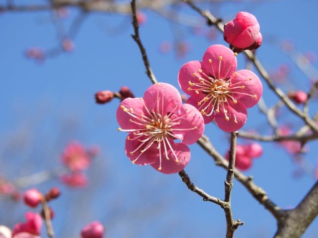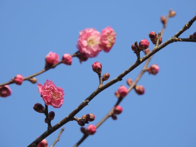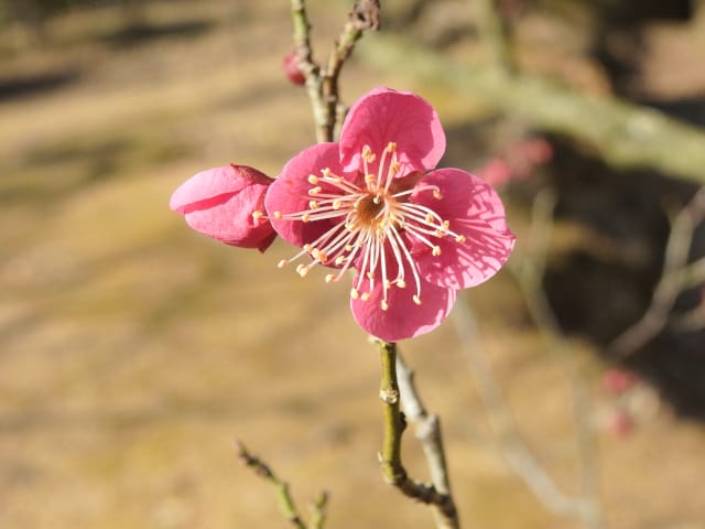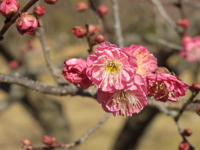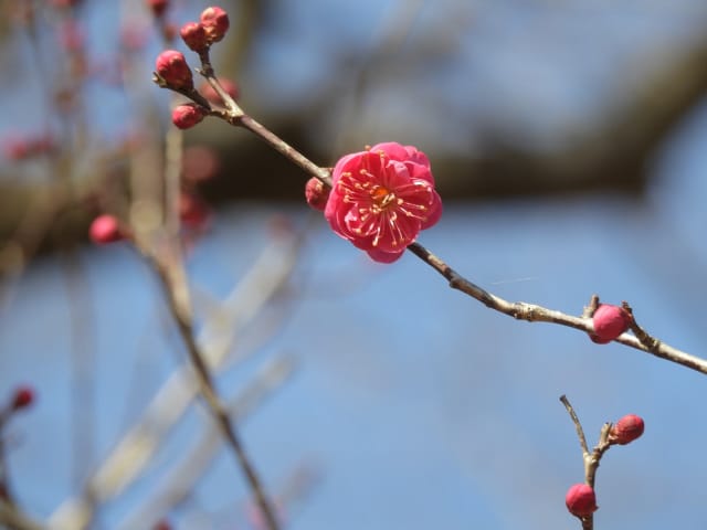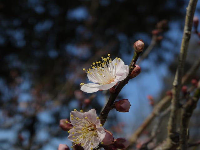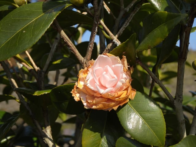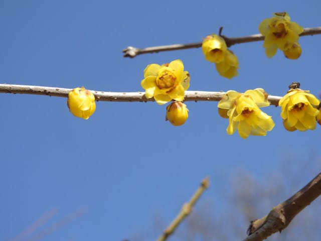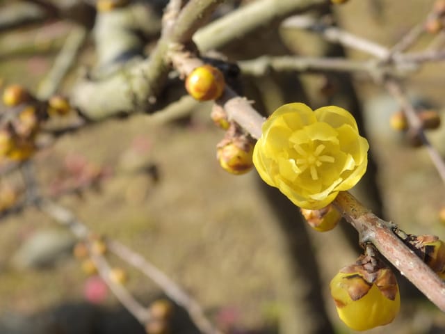 愛知県春日井市春日井グリンピア26/01/18 ソシンロウバイ・アセビ・アケボノアセビ・新規ウメ・新規ツバキ、の開花、見頃のロウバイ・赤花ボケ、ナバナ・ジャノメエリカ・クリスマスローズ・ヒマラヤユキノシタの残留開花、各種実・綿毛の残留、野鳥との遭遇、を期待して訪れました。1月9日に引き続いての訪問です。 梅園のソシンロウバイは、春を思わせる陽気の中、数輪が咲き出していました。 アセビは、万葉苑で、1花序3輪が咲き出していましたが、アケボノアセビは、まだ開花には至っていませんでした。 ウメは、梅園で、4種(鹿児島寒紅1株2輪・大盃2株30輪・八重寒紅2株10輪・冬至1輪)が開花し、本館北脇で、冬至?1株数輪、が開花しており、梅園の紅冬至が、見頃となっていました。 ツバキは、椿園で新規に7種(秋風楽・ヤブ椿(実生)・尾張五色椿・玉霞・乙女の祈り・黒龍・福島百合)が咲き出し、48種(次郎冠者・久寿玉・蝶舞子・葵の上・デビタント・白侘助・太神楽・その他)が、継続開花していました。なお、椿園の開花椿の開花ツバキについては、別ページ記載とし、ここでは、美土野、を、代表として掲載しておきます。 ロウバイは、梅園のロウバイ4株の落葉が完了し、ほぼ満開になり見頃で、カスケード東の株も咲き出していました。 梅園東脇の赤花ボケは、20輪程が開花し、見頃でした。 ナバナは、菖蒲池北東や、ハーブ園で、咲き残っていました。 本館東花壇のジャノメエリカが満開になり、見頃で、接写して来ました。 ハーブ園のクリスマスローズ・ヒマラヤユキノシタは、各1株が、咲き残っていました。 綿毛は、コウヤボウキの綿毛が、外縁部車道西脇で全開しており、万葉苑のナガバノコウヤボウキの綿毛も残留していましたが、ツワブキの綿毛は全開しておらず、撮影をパスしました。 弾けた実は、トベラの実が、外縁部車道東脇で1株数花序弾けており、菖蒲池北などの、ナンキンハゼの弾けた実も、見頃を保っていました。 各種実は、マメナシ・ベニシタン・モチノキ・ソテツ・オモト・ビナンカズラ・シナヒイラギ、などが見頃を保ち、ムクロジ・コクチナシ・オオヤエクチナシ・ソヨゴなどが終盤、と、なっていました。 野鳥との遭遇は、エナガ、に、留まりました。 散策後、午後の一番バス(発車時刻:14時53分)迄には、1時間半以上の時間があり、徒歩で帰宅する事を選択したのですが、風が弱い、ぽかぽか陽気の、春の日差しの中、腰痛を堪え、重たい足を引きずって歩くと、汗を掻き、「寒いほうがマシかも」などとの贅沢な思いが、頭を過ぎりました。 |