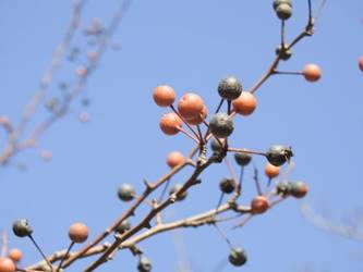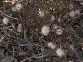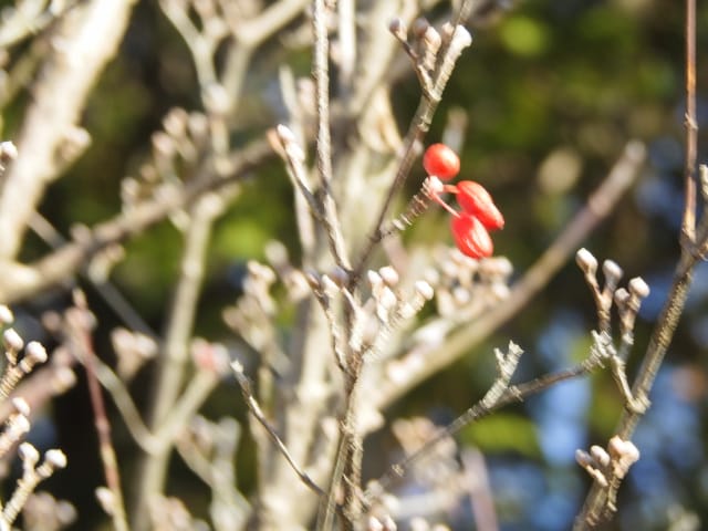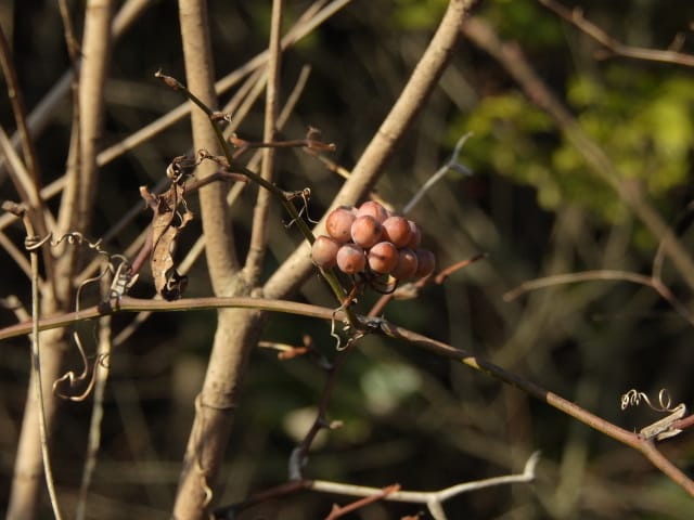 愛知県春日井市高森台外周林26/01/18 春を思わせる陽気は、この日、1月18日(日)と19日(月)迄で、1月20日(火)以降は、今季最も強い寒波が押し寄せ、風も強い、との天気予報。 前日の草花散策の為か、腰痛が悪化した模様ですが、この日を逃すと、暫く草花散策が叶わないと思い、思い切って出掛ける事としました。 コンビニ経由で、春日井グリンピア行きのバス停に至る、道すがら、1月9日に引き続いて、高森台外周林のコカモメヅルの様子を見てみると、弾けた袋果が残留していました。 |