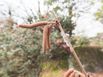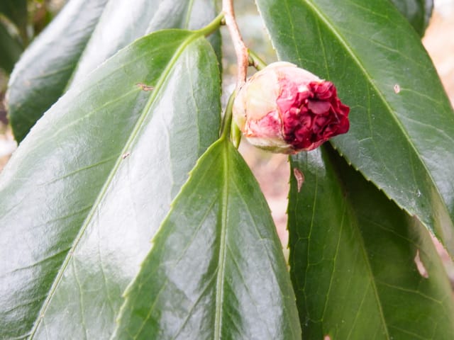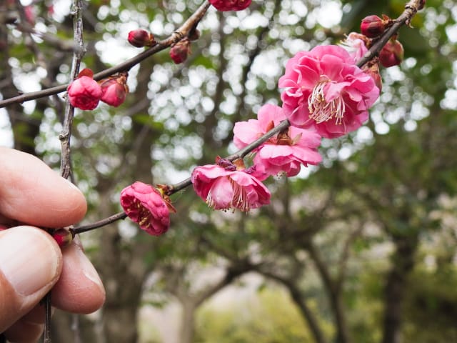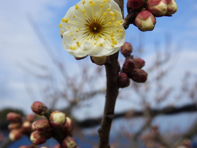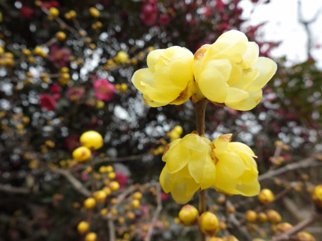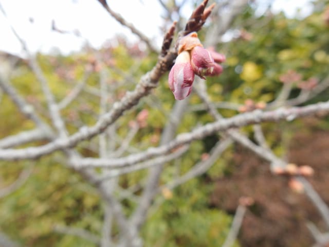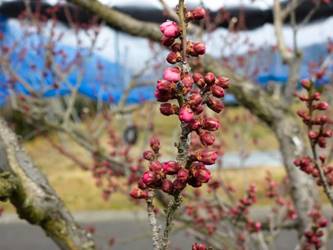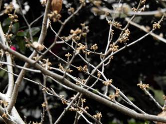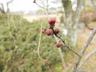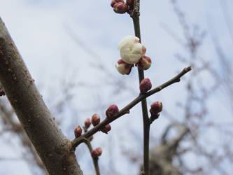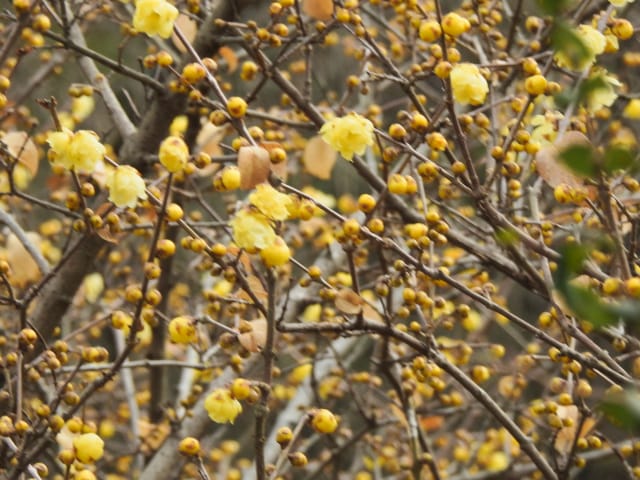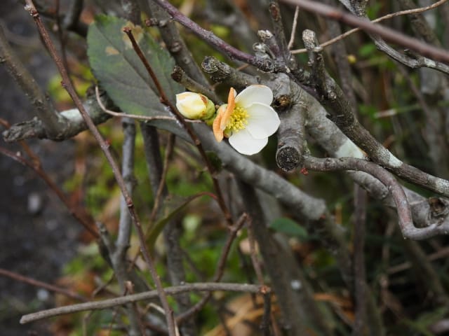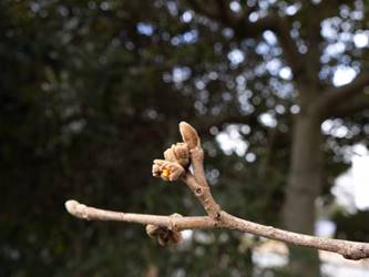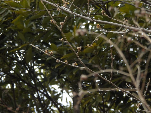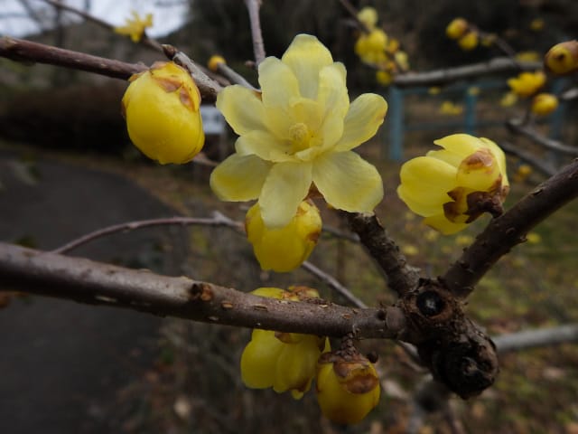 名古屋市守山区東谷山フルーツパーク26/01/27 フクジュソウ・新規ウメ・新規ツバキ・シナマンサクの開花、満開のオイワケヒイラギナンテン?、見頃のソシンロウバイ・スイセン、キフクリンキンマサキ弾けた実の残留、などを期待して訪れました。 1月17日に引き続いての訪問です。 温室南のフクジュソウは、多数が、蕾の状態まで成長しており、閉じた花も見つかったので、開花を期待して、12時半まで粘ったのですが、その間、日差しがあったのは、ほんの瞬間でした。ど曇りの空の下、冷たい風も吹き出した道を、落胆しながら歩いて、JR高蔵寺駅に到着しました。トイレを済ませて、春日井シティーバスのバス停に戻ってくると、13時10分、空は、突然のように晴れ渡り、日が差していました。意地悪な天気に不平を言いながら、ベンチに腰を掛け、背中に日差しを受け、暫し休憩。バスの発車時刻が迫り、ベンチから立ち上がろうとすると、天に不平を言った罰が当たったのか、腰痛が起こり、約1分間、立ち上がれませんでした。 ウメは、新規に、8種(南高・小梅・玉織姫(半開)・品種不明白梅・紅牡丹・麝香梅・八重唐梅)が咲き出し、 ツバキは、1種(姫侘助)の新規開花、に留まりました。 シナマンサクは、まだ蕾でした。 四季の花園のオイワケヒイラギナンテン?は、満開&見頃になっていました。 ソシンロウバイは、ポポ園西脇生垣の株、四季の花園脇の株、が見頃になっていました。 スイセンは、北門付近・売店東に加え、温室西でも咲き出し、売店東では、ヤエザキニホンスイセンらしき花も咲きだしていました。 ビワ園西脇のキフクリンキンマサキの弾けた実は、3個ほどが、残留していました。 |