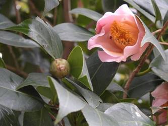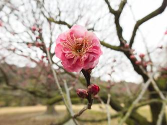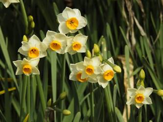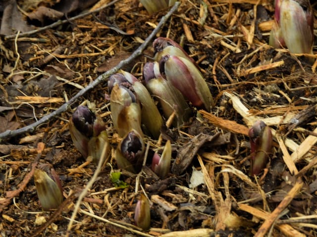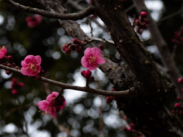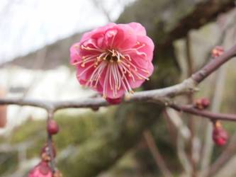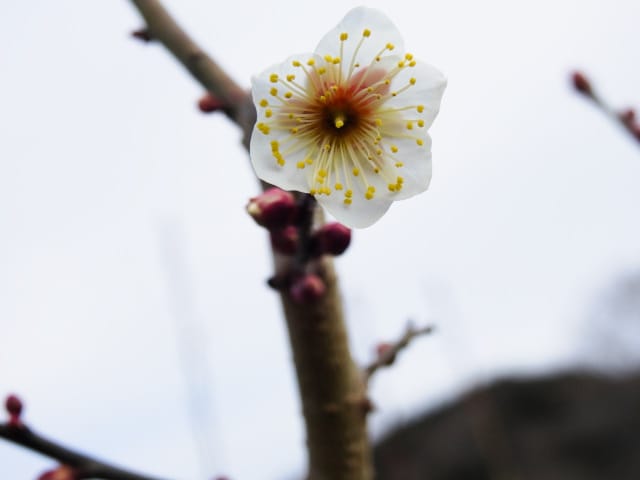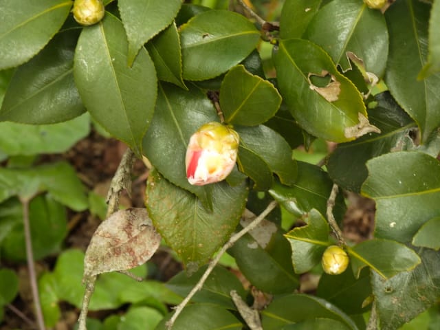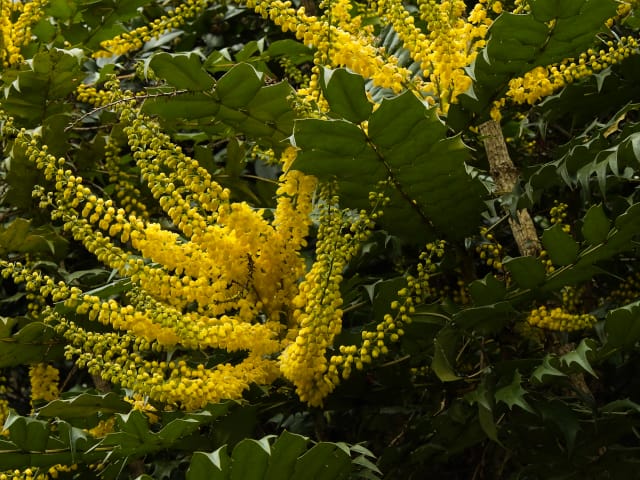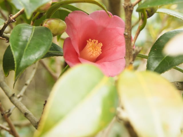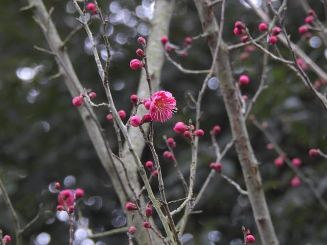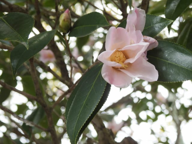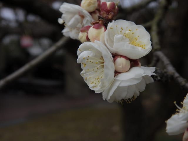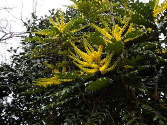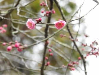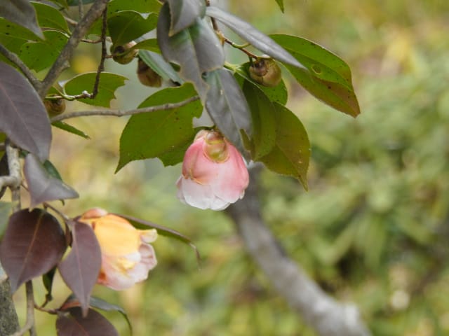名古屋市守山区東谷山フルーツパーク26/01/27 フクジュソウ・新規ウメ・新規ツバキ・シナマンサクの開花、満開のオイワケヒイラギナンテン?、見頃のソシンロウバイ・スイセン、キフクリンキンマサキ弾けた実の残留、などを期待して訪れました。 1月17日に引き続いての訪問です。 温室南のフクジュソウは、多数が、蕾の状態まで成長しており、閉じた花も見つかったので、開花を期待して、12時半まで粘ったのですが、その間、日差しがあったのは、ほんの瞬間でした。ど曇りの空の下、冷たい風も吹き出した道を、落胆しながら歩いて、JR高蔵寺駅に到着しました。トイレを済ませて、春日井シティーバスのバス停に戻ってくると、13時10分、空は、突然のように晴れ渡り、日が差していました。意地悪な天気に不平を言いながら、ベンチに腰を掛け、背中に日差しを受け、暫し休憩。バスの発車時刻が迫り、ベンチから立ち上がろうとすると、天に不平を言った罰が当たったのか、腰痛が起こり、約1分間、立ち上がれませんでした。 ウメは、新規に、8種(南高・小梅・玉織姫(半開)・品種不明白梅・紅牡丹・麝香梅・八重唐梅)が咲き出し、 ツバキは、1種(姫侘助)の新規開花、に留まりました。 シナマンサクは、まだ蕾でした。 四季の花園のオイワケヒイラギナンテン?は、満開&見頃になっていました。 ソシンロウバイは、ポポ園西脇生垣の株、四季の花園脇の株、が見頃になっていました。 スイセンは、北門付近・売店東に加え、温室西でも咲き出し、売店東では、ヤエザキニホンスイセンらしき花も咲きだしていました。 ビワ園西脇のキフクリンキンマサキの弾けた実は、3個ほどが、残留していました。 |