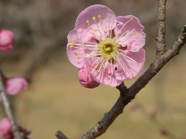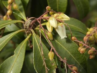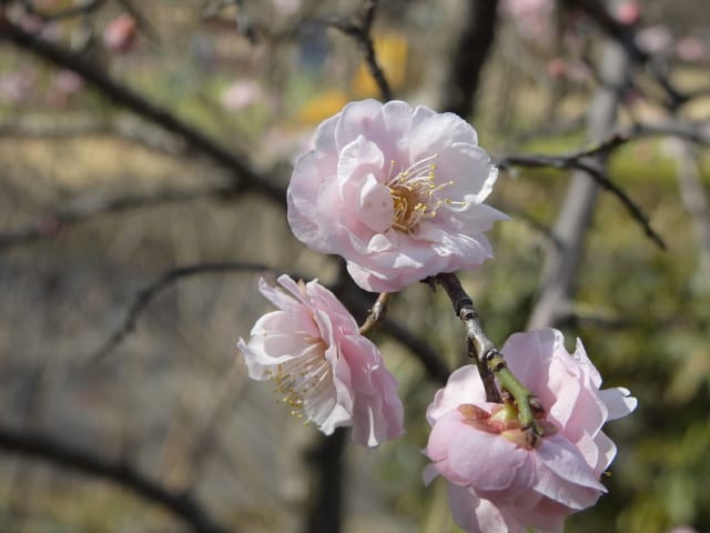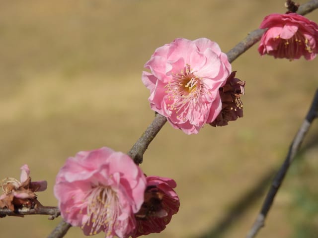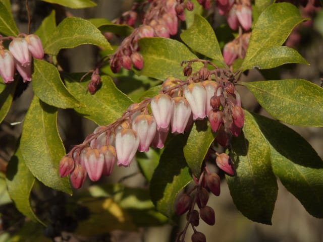 愛知県春日井市春日井グリンピア26/02/17 ネコヤナギ・カネノナルキ・新規ツバキ・新規ウメ、の開花、見頃のウグイスカグラ・アセビ・アケボノアセビ、ハルリンドウの芽生え、カワセミとの遭遇、各種実の残留、などを期待して訪れました。2月10日に引き続いての訪問です。 この日は、前週後半の春を思わせる陽気から一転、寒の戻りで、冬晴れ。 病院通いの1週間(前日2月16日の歯科医、翌日2月18日の脳神経内科、週末2月20日の診療所一般内科)の合間を縫っての訪問となりました。 ネコヤナギは、梅園北脇のネコヤナギ黒は、まだ蕾でしたが、万葉苑の、通常タイプのネコヤナギは、1株2枝10輪程が咲き出し、見頃でした。 温室2階のカネノナルキも咲き出し、すぐ脇では、ベンケイソウ科アエオニウムも、咲き出していました。 ツバキは、椿園では、新規に13種(胡蝶絞侘助・絞菊月・酒中花・綾錦・高蔵紅(半開)・天ケ下・紅常満寺・村下・藪椿 白・古代の華・シナモンシンディ・銀閣寺赤ヤブ・近江衣(半開))が開花し、全体で、90種程が開花しており、室内(温室と本館)で、金花茶が、新規に開花していました。 ウメの新規開花は、梅園での1種(月影枝垂れ)の咲き出しに留まりましたが、梅園のウメについて、1部の株に名札が新設されていました。どうせなら、全ての株に、名札を付けて欲しかったです。 温室東のウグイスカグラは、開花数が1株5輪に増えており、 アセビは、万葉苑に加え、本館東脇などでも咲き出し、アケボノアセビは、温室東石垣脇に加え、見本園東石垣脇でも、開花&見頃になっていました。 前週末の春を思わせる陽気で、ハルリンドウの芽生えを期待し、見本園東石垣上を見てみましたが、ハルリンドウは見当たりませんでした。ハルリンドウですが、春日井グリンピアに隣接する、築水池周回路に見に行きたいのはヤマヤマですが、足腰の具合が今一で、急坂を上り下りする元気がありませんでした。 菖蒲池で、カワセミの姿を探してみたのですが見当たらず、代わりに、モズを見掛けました。昨年同様、モズに追っ払われてしまったのかもね。 各種実は、ソテツ・ベニシタン・シナヒイラギ・センダンが見頃を継続し、アオキの色付きが増し、オモト・マメナシ・クロガネモチ・モチノキ・ナンキンハゼ、などが残留していました。 なお、 椿園の開花椿については、別ページ記載とし、ここでは、代表として、「天ケ下」を掲載していきます。 梅園のロウバイ・ソシンロウバイ、梅園東脇の赤花ボケ、については、飽きてしまい、観察を中止してしまいました。悪しからず。 |